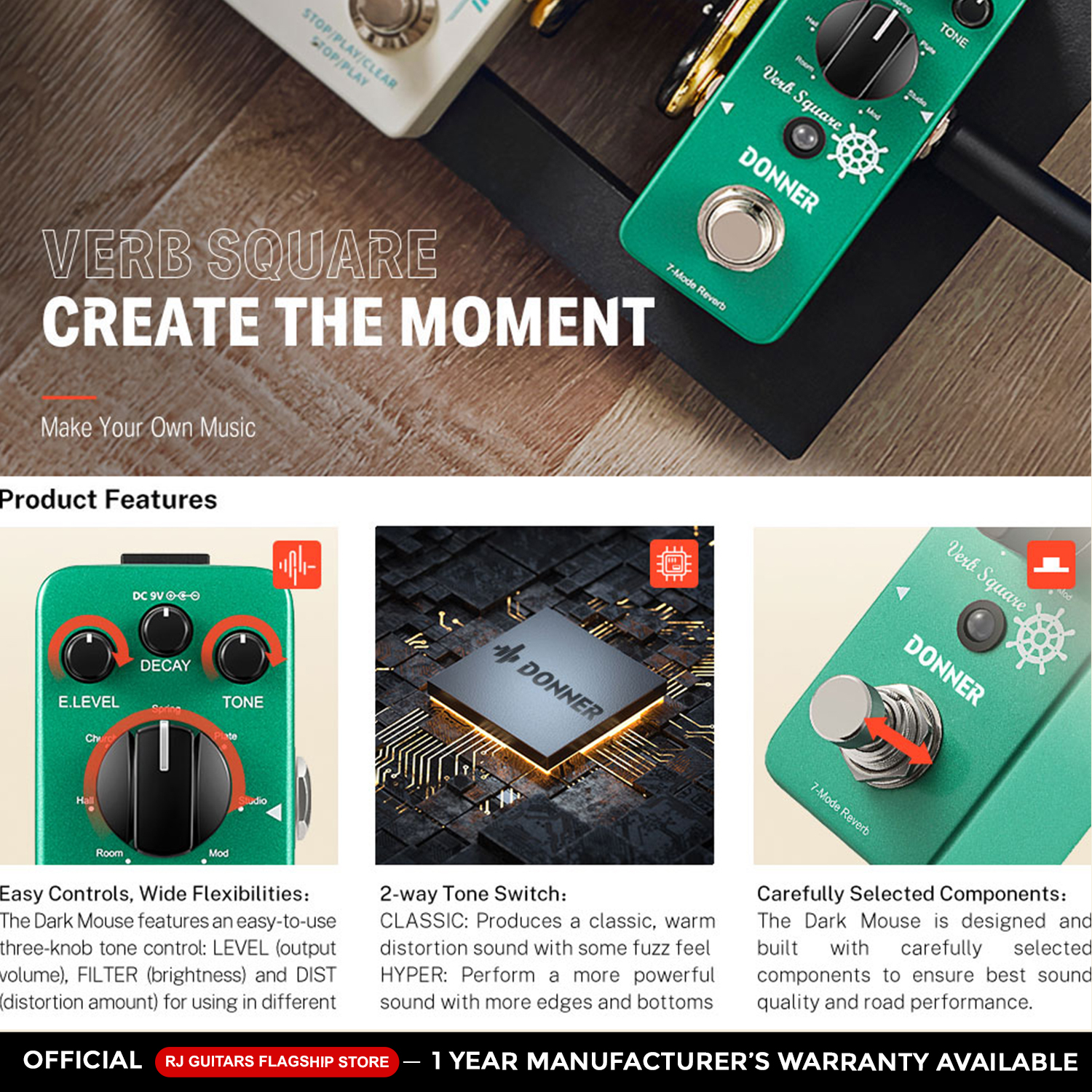 Donner Reverb Guitar Pedal, Verb Square Digital Reverb
