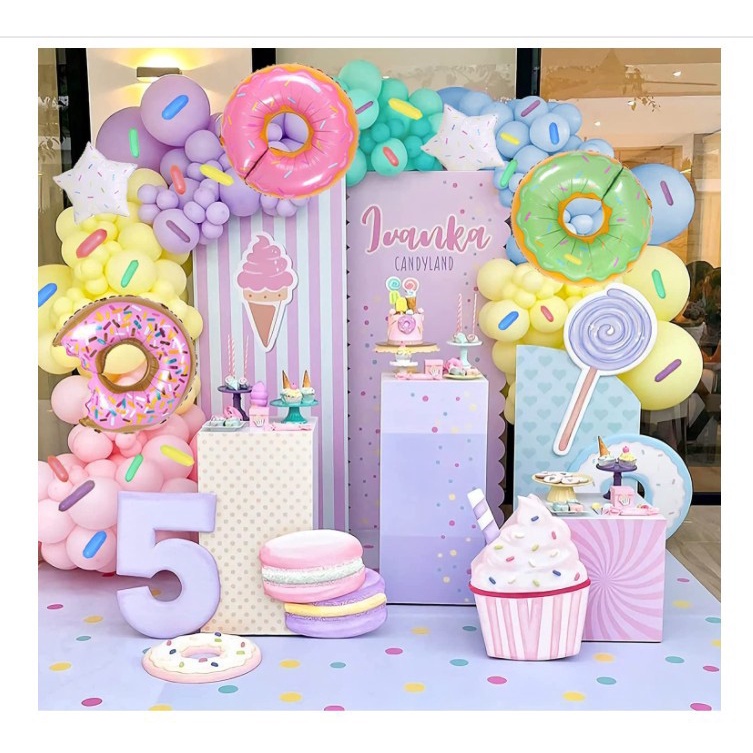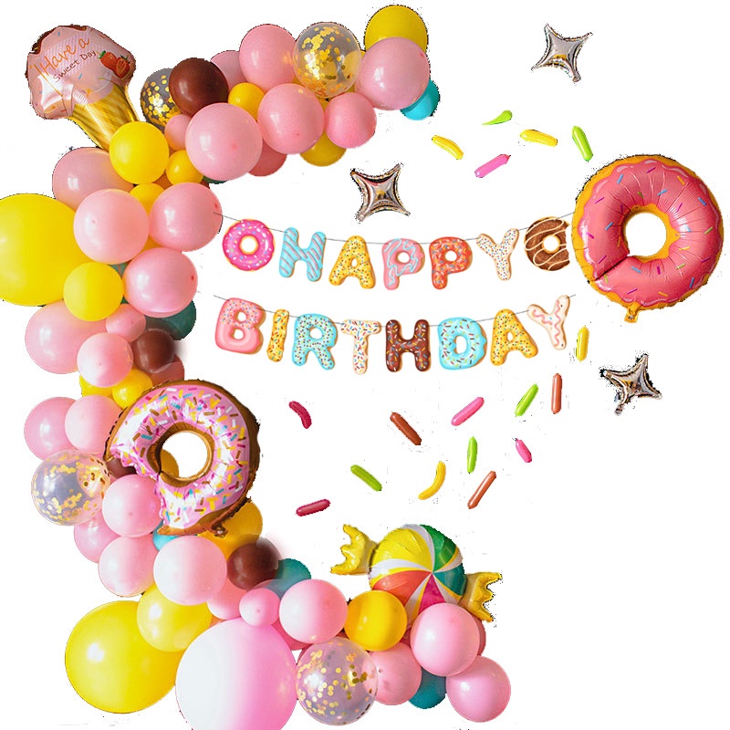 Donut Balloons Candy Ice Cream Birthday Banner Candy Colored Macarons Latex Balloons Birthday Party Decorations