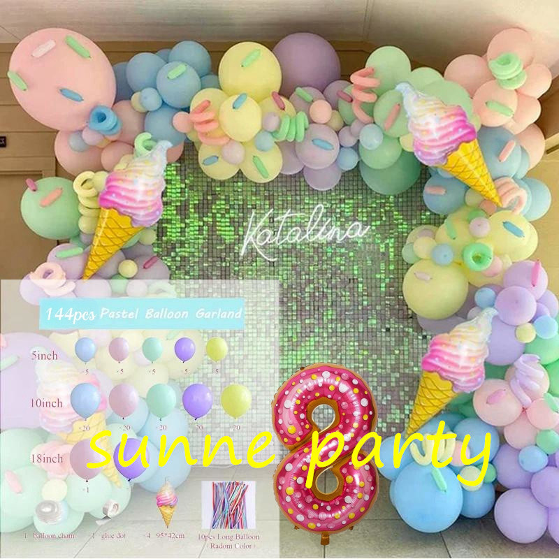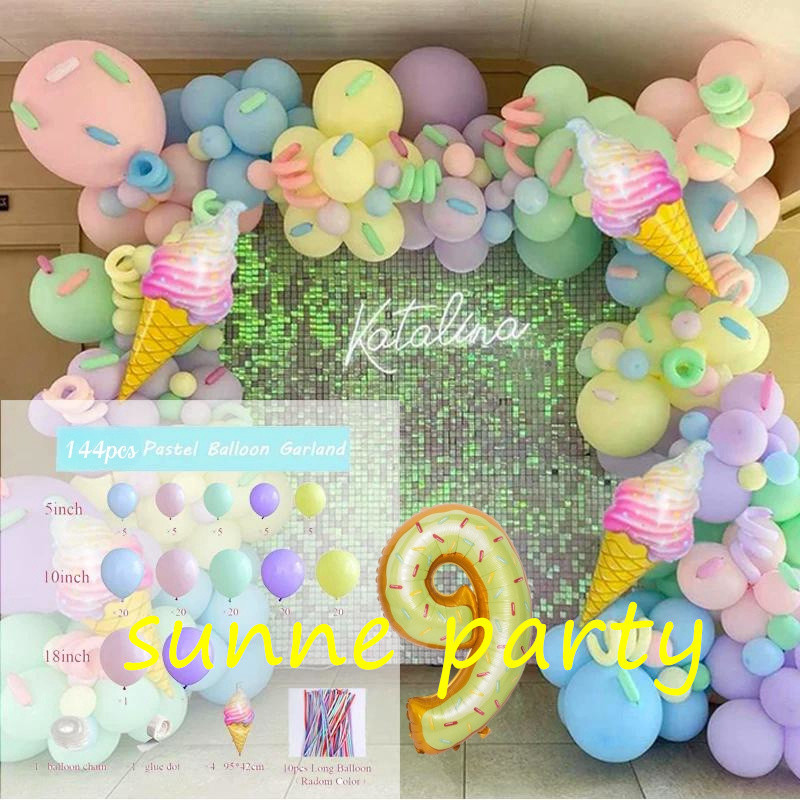 Donut Theme Balloon Arch Garland Kit 32inch Number Balloon Ice Cream Donut Foil Balloons 0-9th Birthday Baby Shower