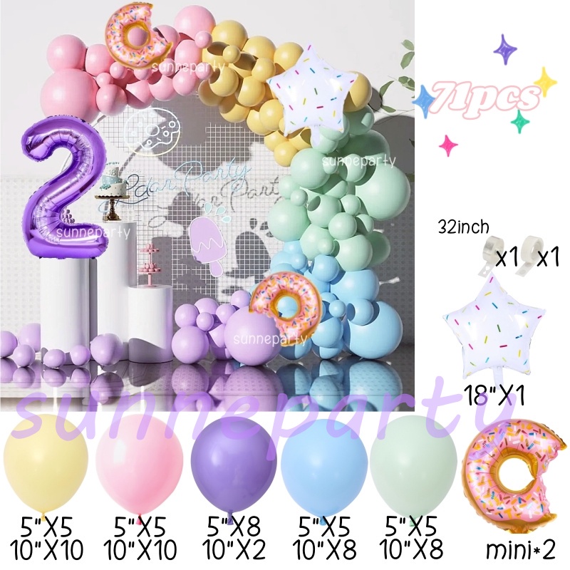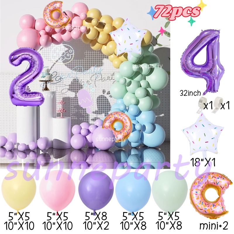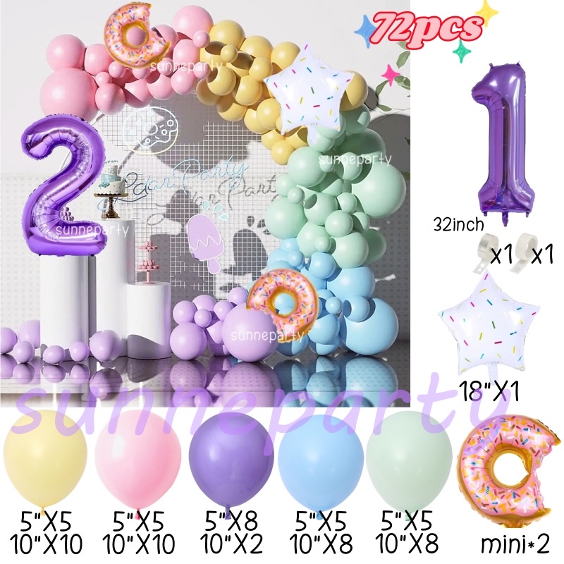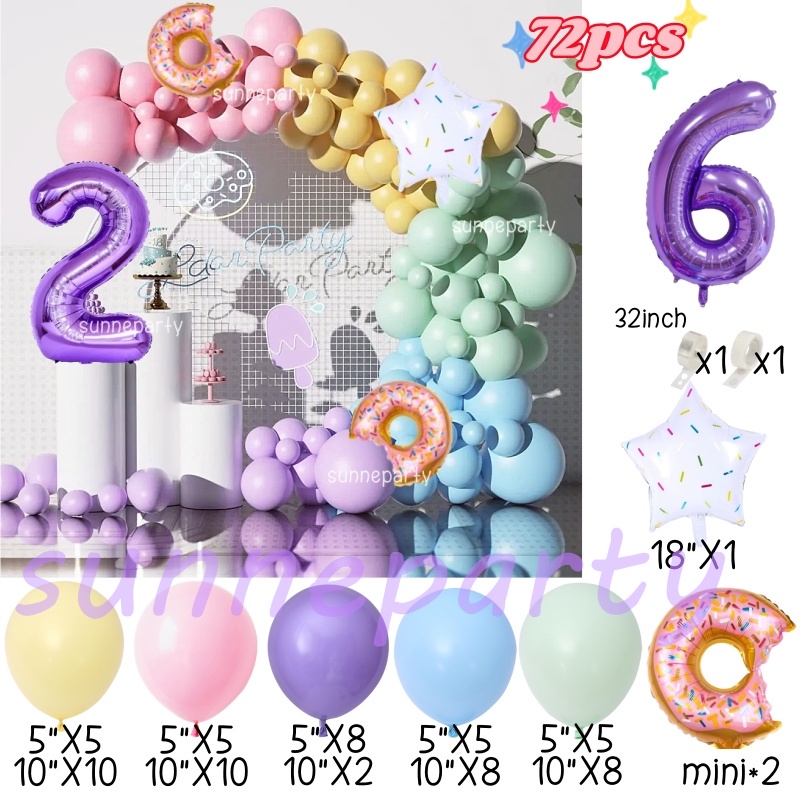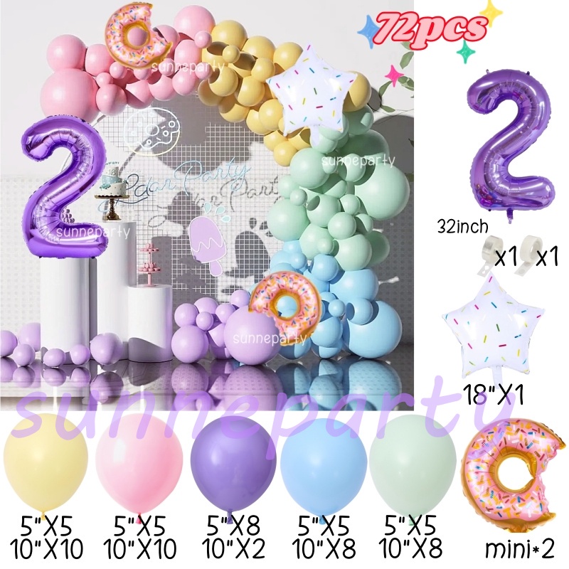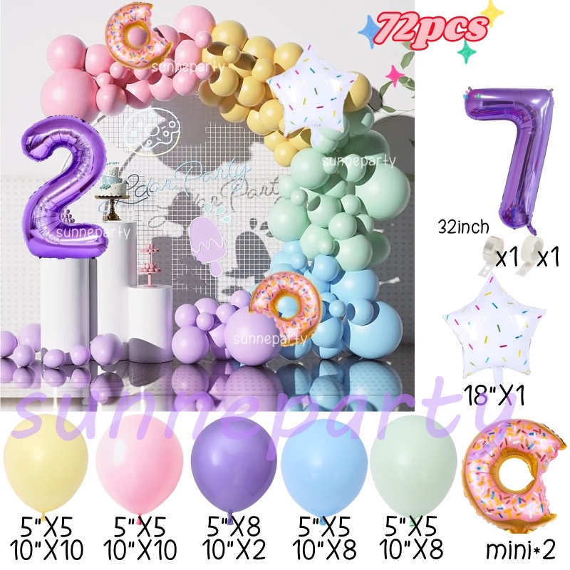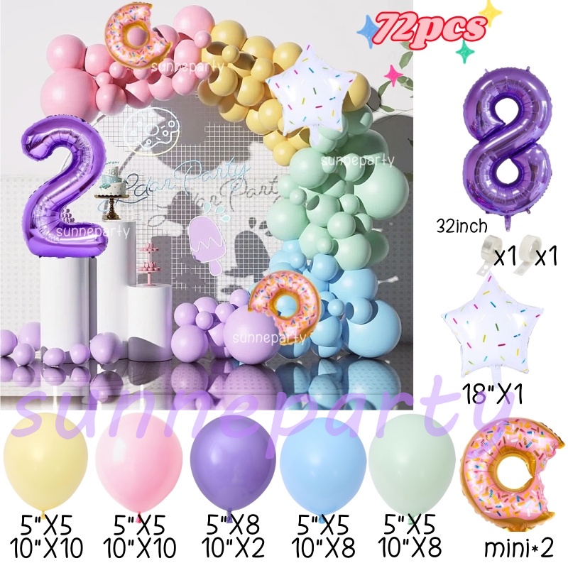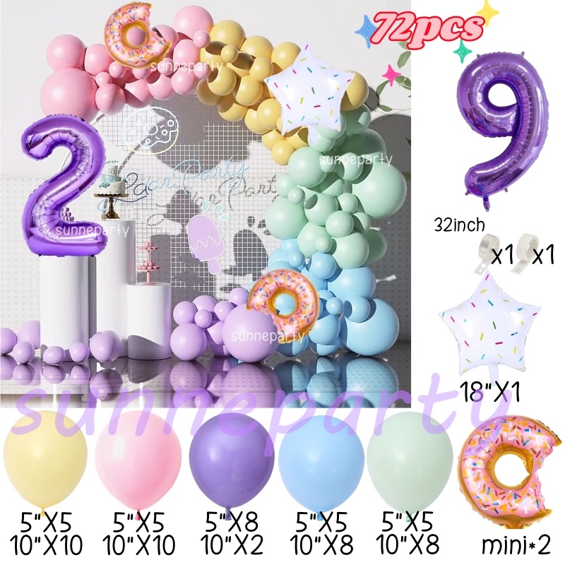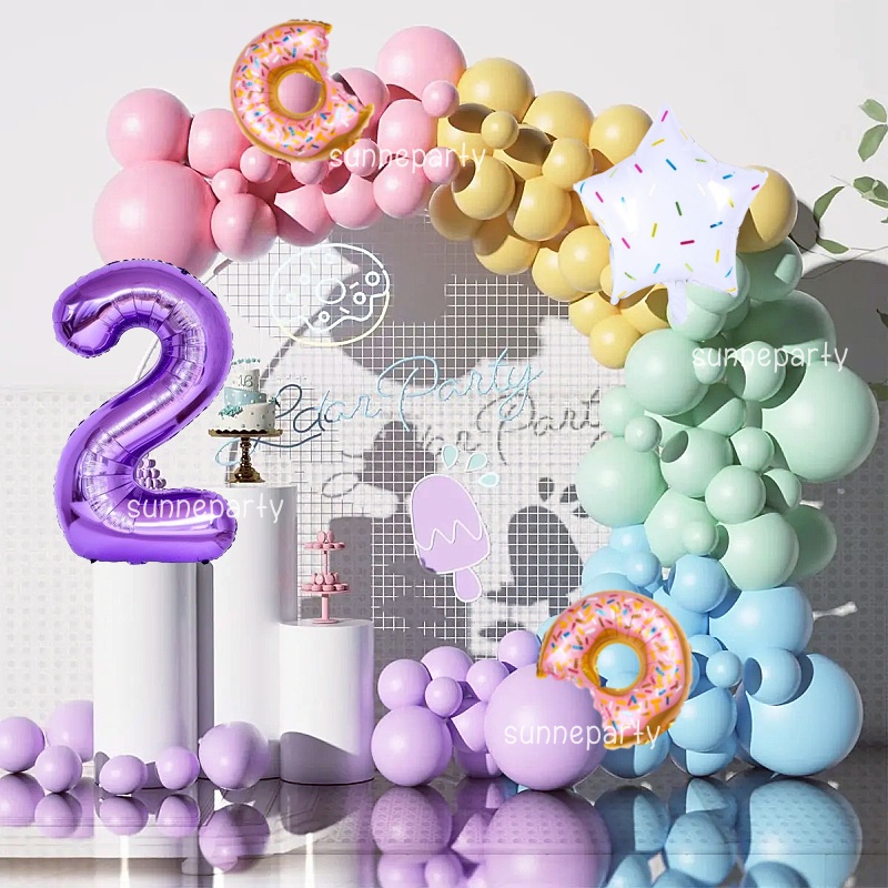 Donut Theme Balloon Garland Arch Set 0-9th Purple Number Balloon Candyland Foil Balloons Party Decorations Party Needs