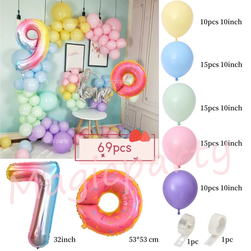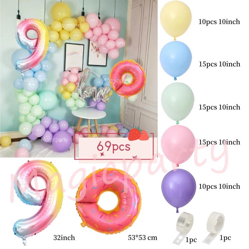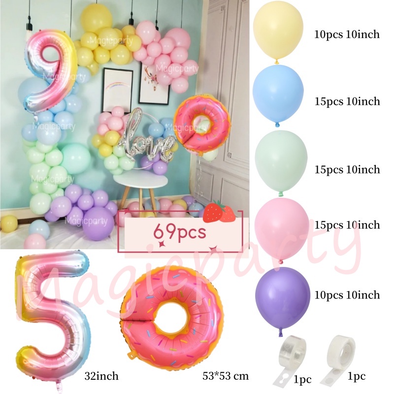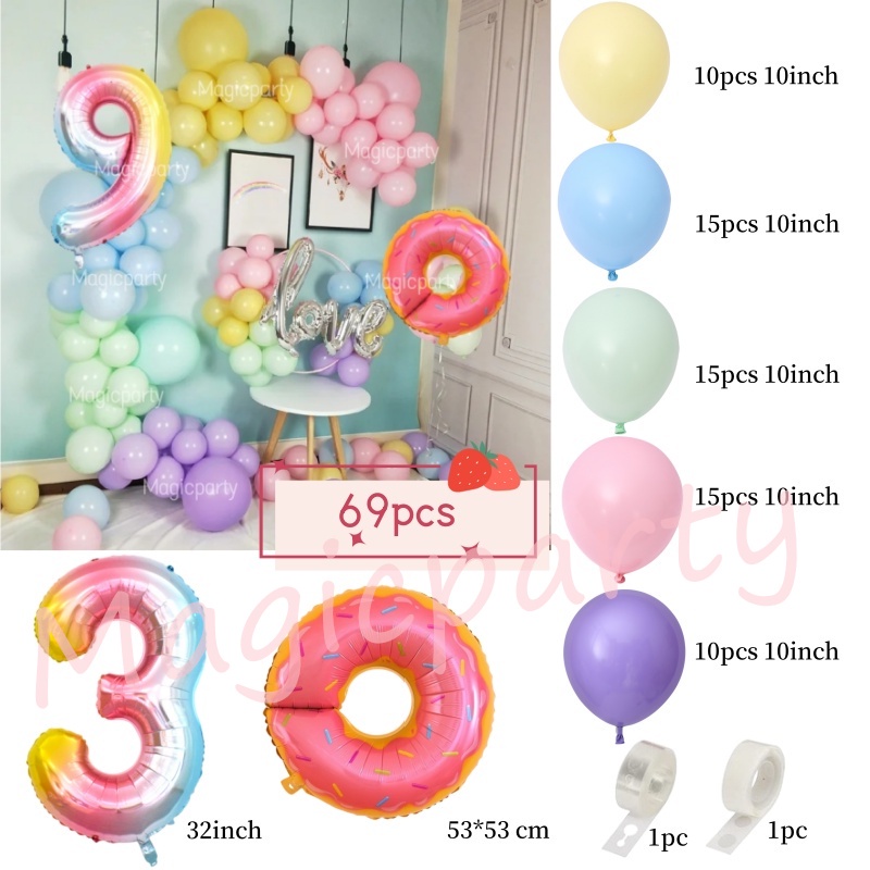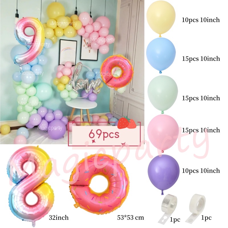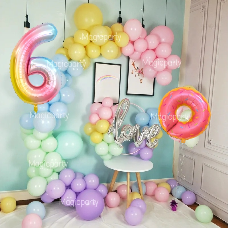 Donut Theme Balloon Gradient 32Inch 1-9th Number Pink Doughnut Foil Balloons Birthday Decoration Set Kids Toys Party Needs
