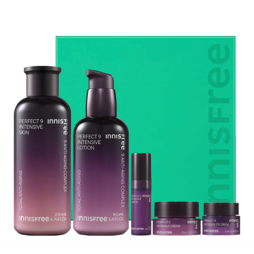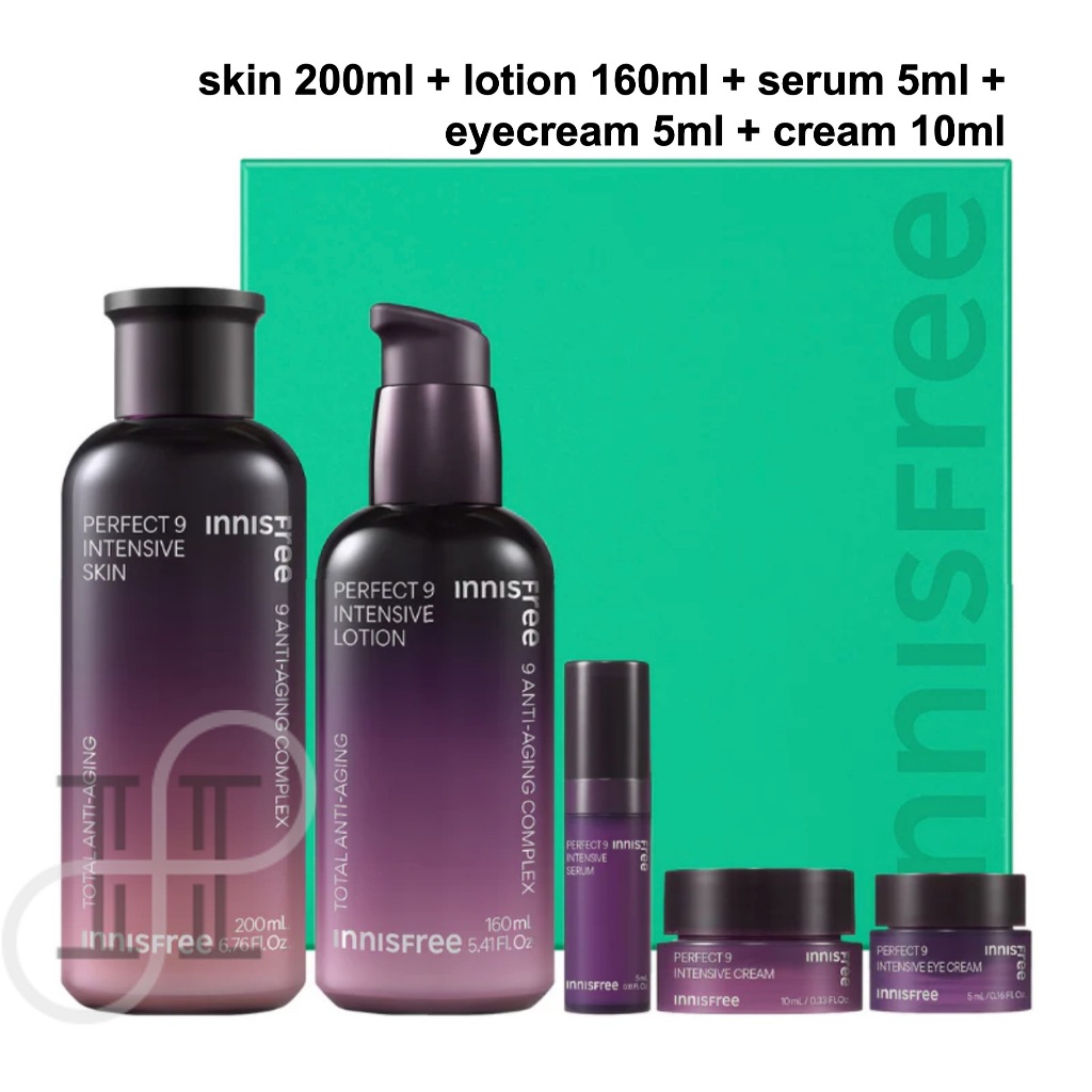🇰🇷[INNISFREE /SKINCARE SET] innisfree PERFECT9 INTENSIVE SKINCARE SET / Skin 200ml + Lotion 160ml + serum 5ml + eyecream 5ml + cream 10ml, Korea Olive Young Cosmetics