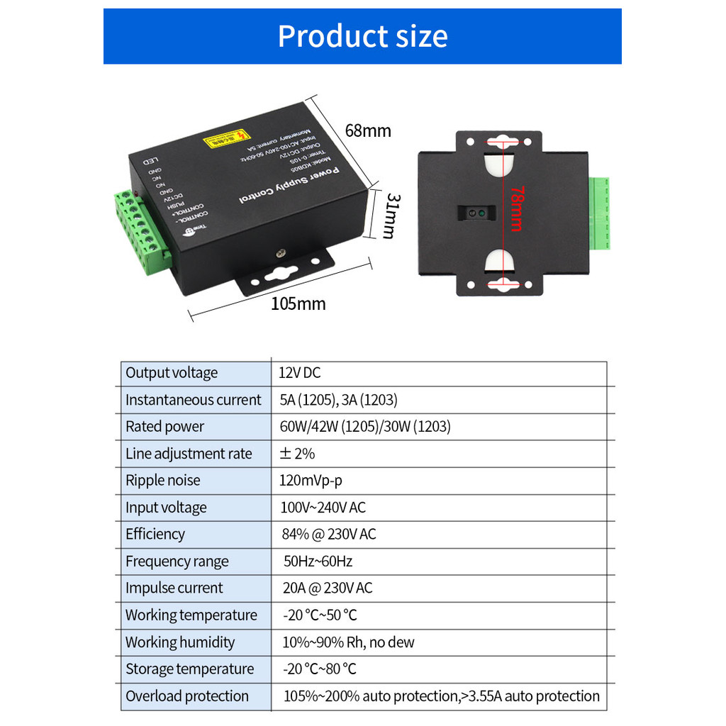 Door Access Control Power Switch Power Supply Control Adapter for Fingerprint Access Control System