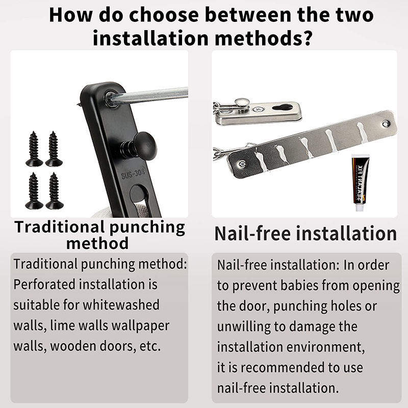 Door Chain Lock Stainless Steel Chain Door Guard with Spring Anti-Theft Press Lock