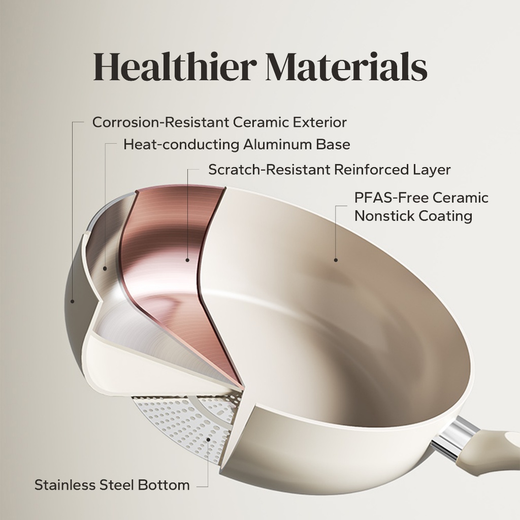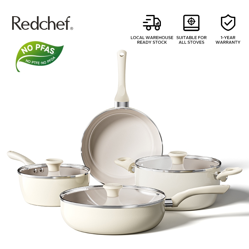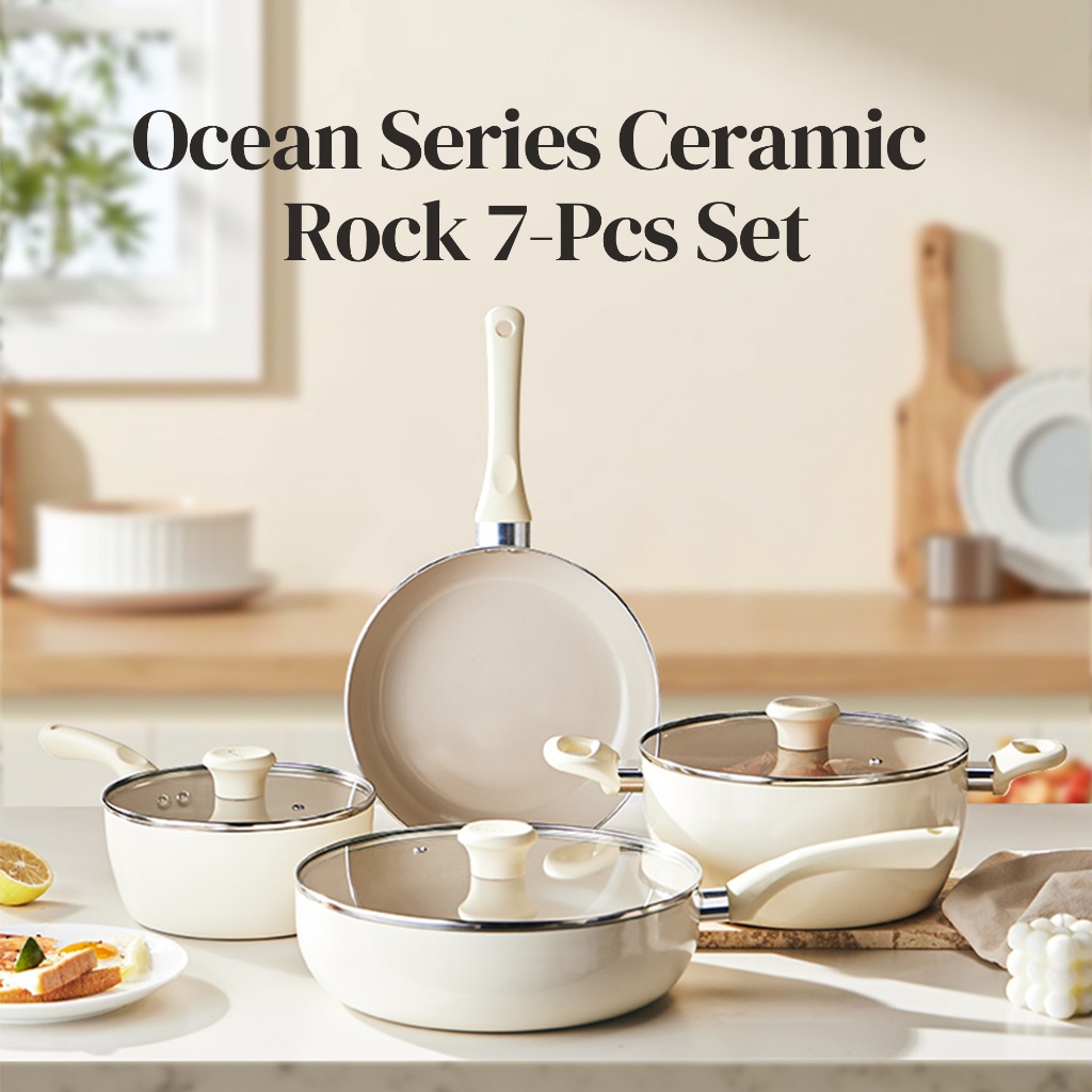 Redchef Sea Series Nonstick Ceramic Rock Cookware Set 7Pcs No PFAS& PTFE& PFOA Suitable for All Stoves