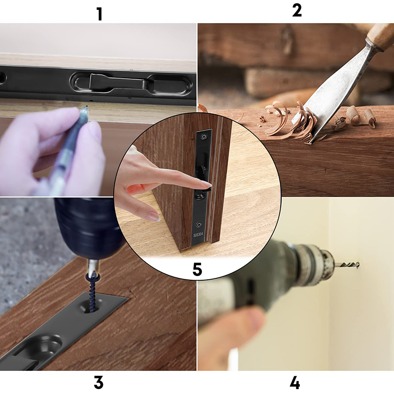 Door Flush Bolt 6 Inch Stainless Steel Concealed Sliding Bolt Lock French Door Latch
