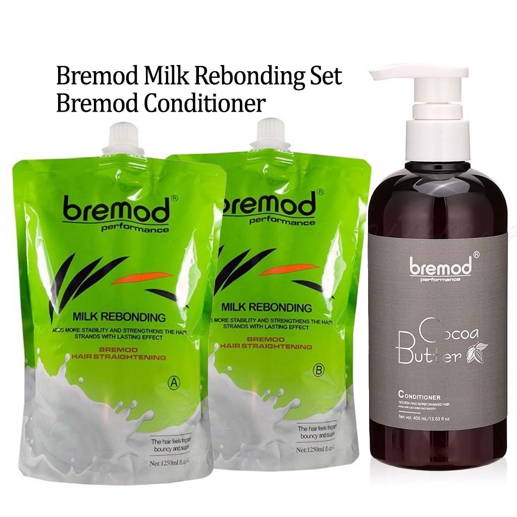 Bremod Rebonding Set A+B 1250ml Milk & Classic +Bremod Hair Conditioner 400ml Damage Hair Care