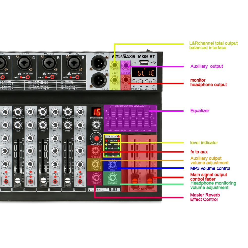 NEW BAXS MX06BT professional mixer 6-channel built-in na EQ 16DSP recording function na sumusupor