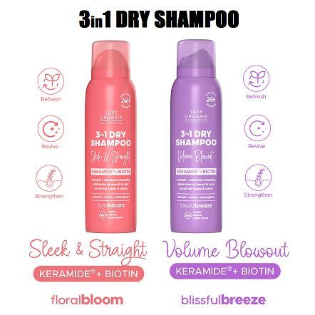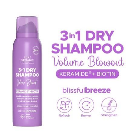 LUXE ORGANIX 3in1 Dry Shampoo (Sleek & Straight Floral Bloom & Volume Blowout Blissful Breeze 110ml)