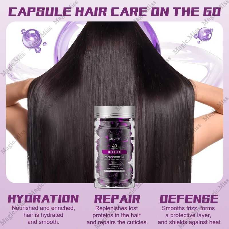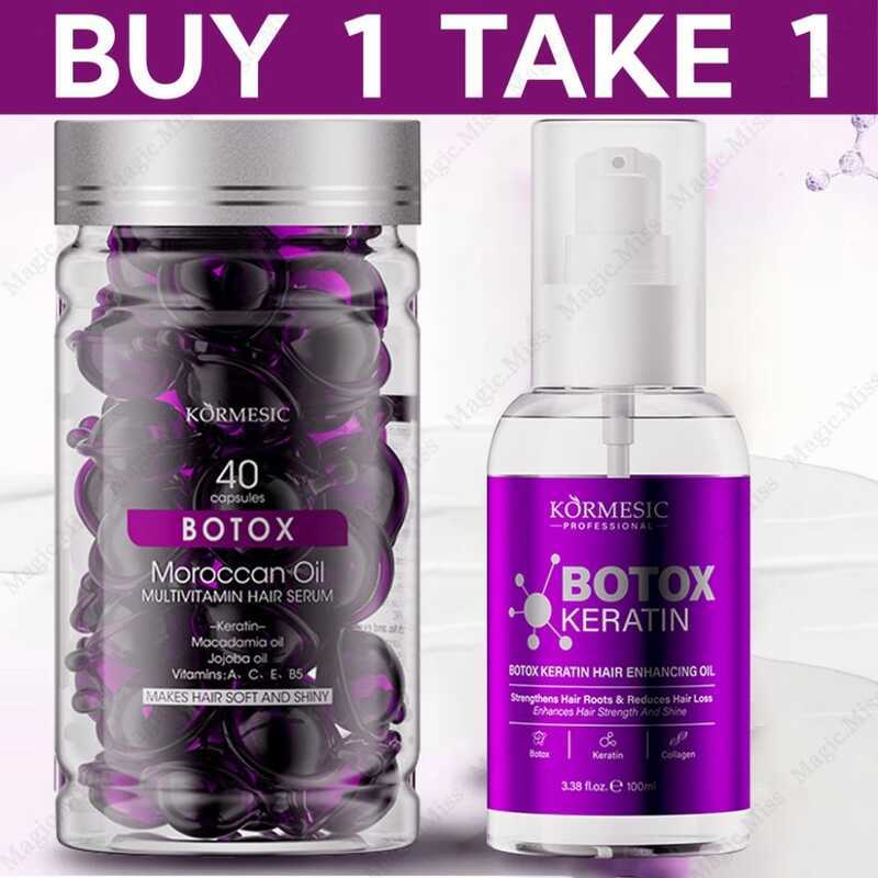 BUY TAKE 1 Botox Keratin Enhancing 100Ml + 40Pcs Moroccan Essential Oil Capsule Repair Damaged Anti