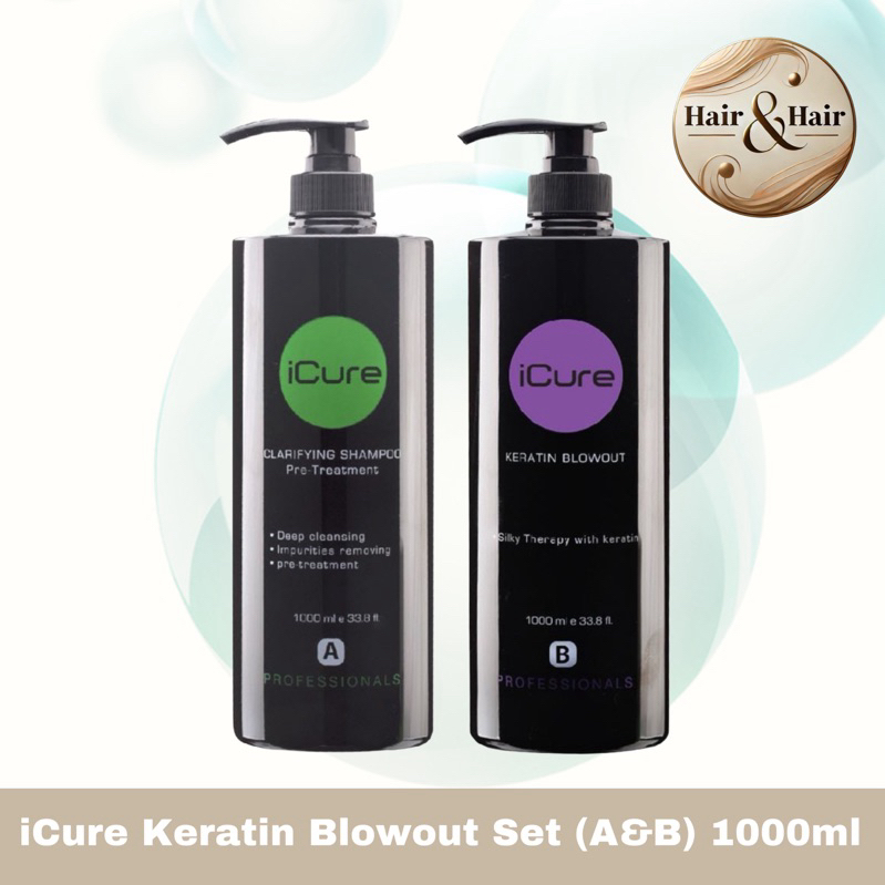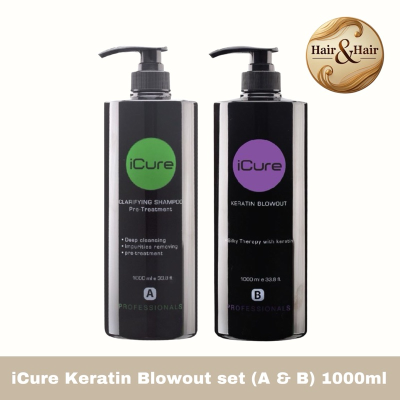 iCure Keratin Blowout Set (clarifying shampoo 1000ml+ keratin blowout 1000ml)