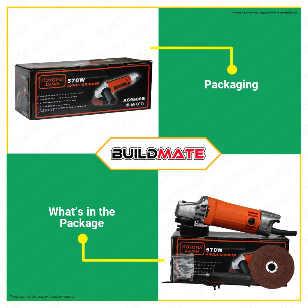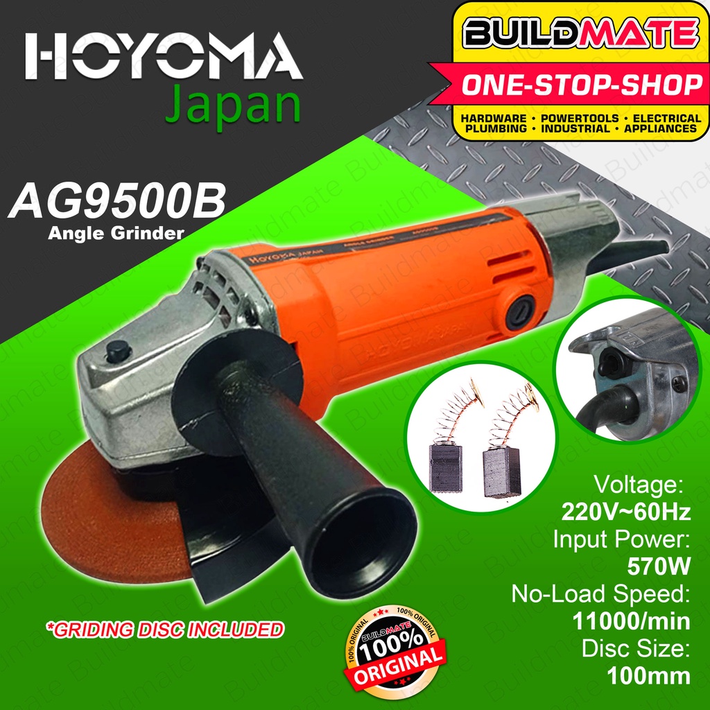 HOYOMA Angle Grinder 570W With FREE Grinding Disc AG9500B 100% ORIGINAL •BUILDMATE• HYMPT