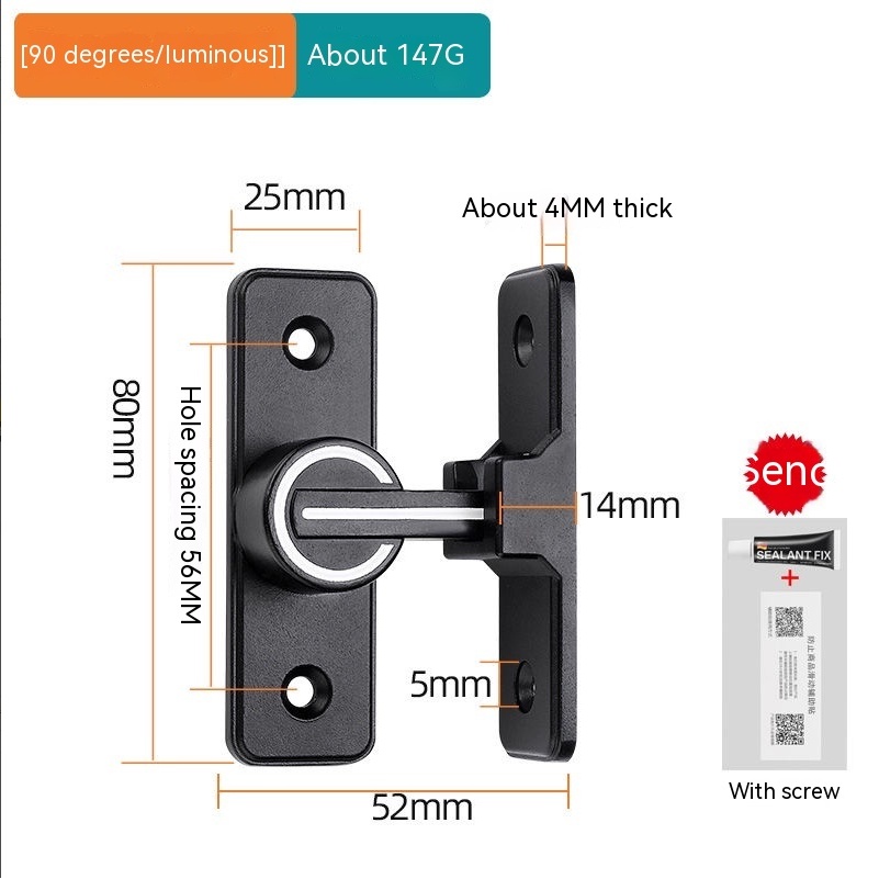 Door handle free punch door latch 90 push-pull door lock bolt door latch bathroom lock