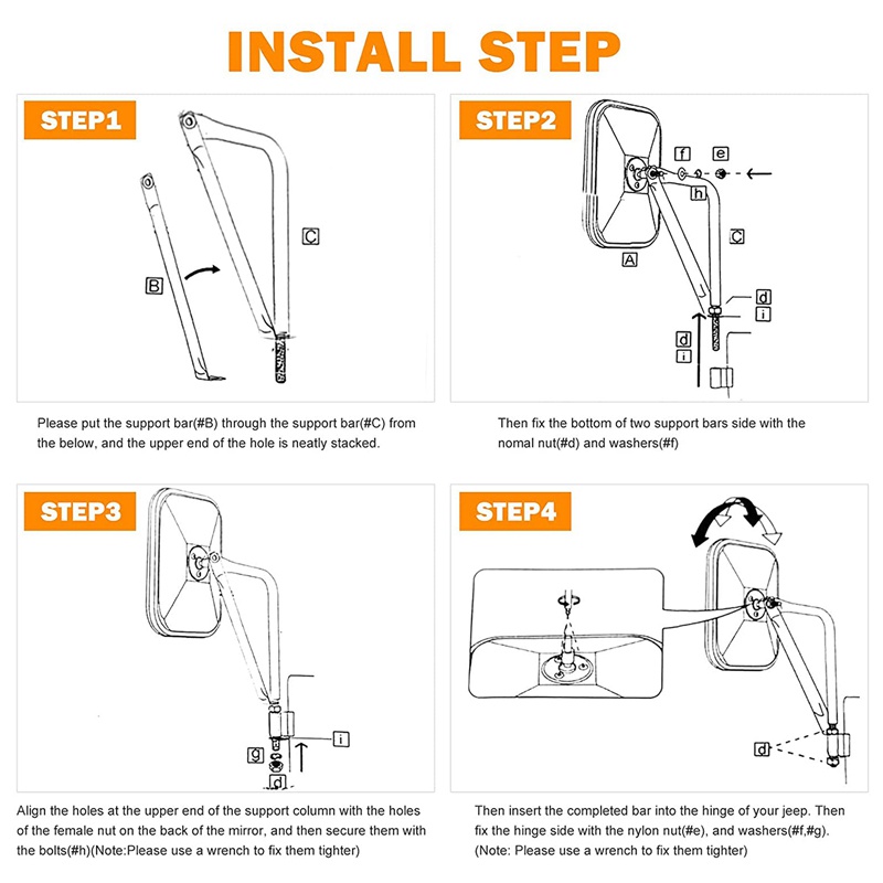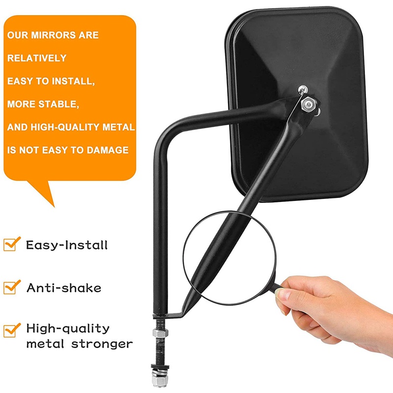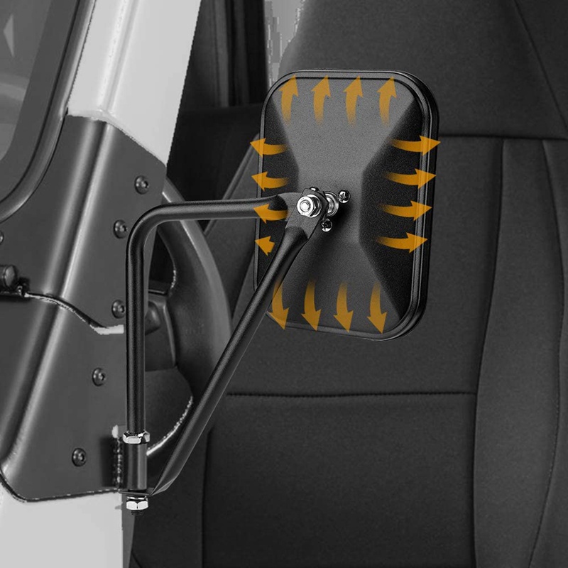 Doors Off Mirrors for Jeep Wrangler CJ YJ TJ JK JL & Unlimited, Wider Rearview Mirrors Square Door Side Hinge Mirror