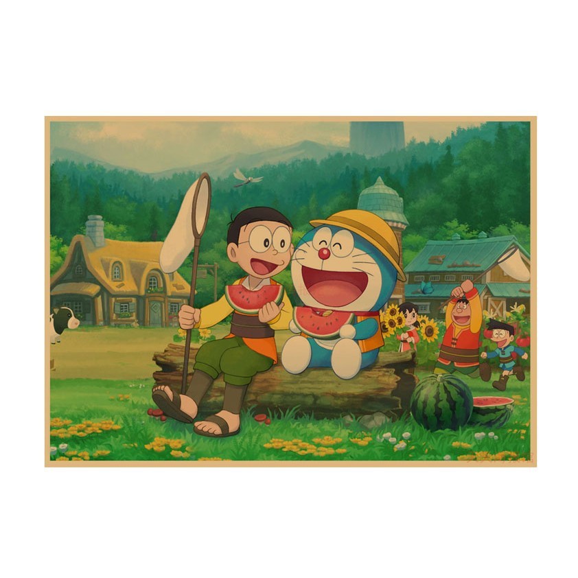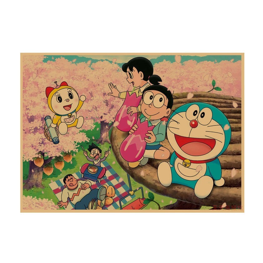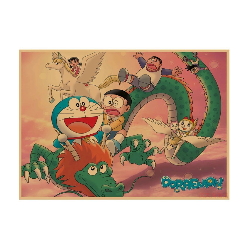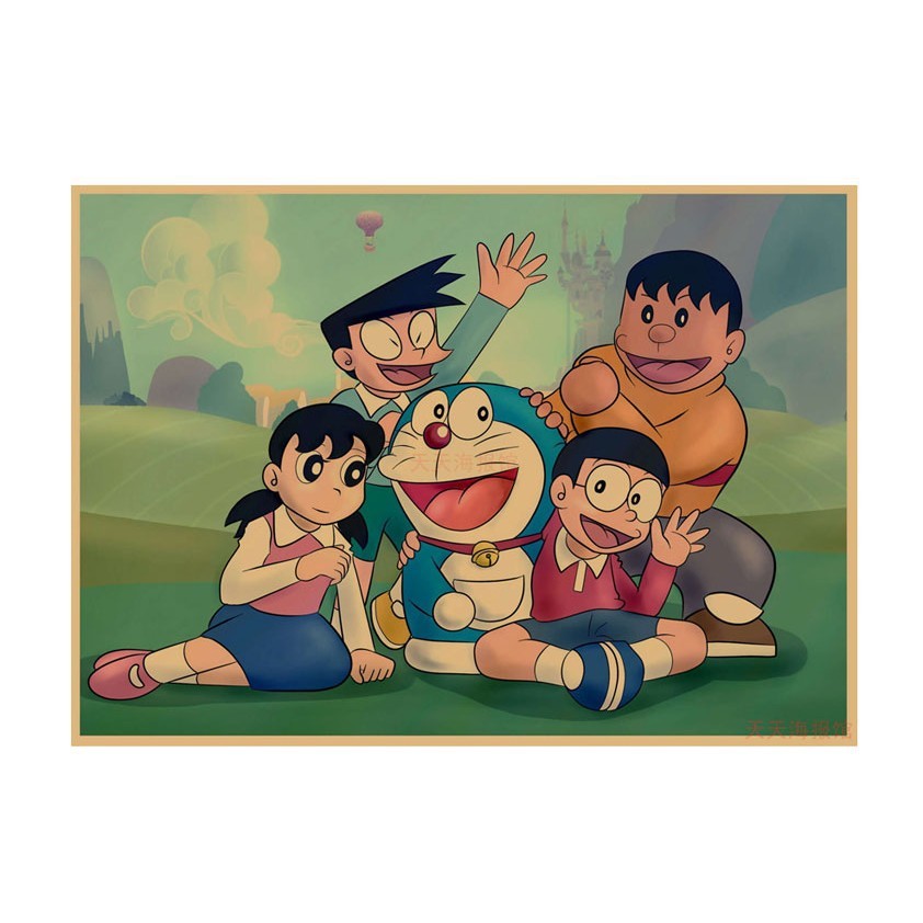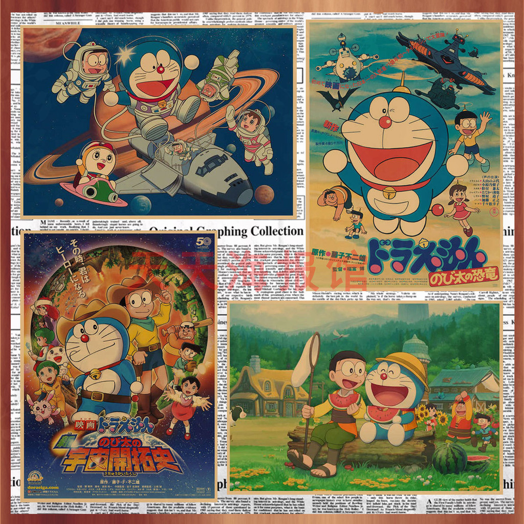Doraemon Doraemon Doraemon Doraemon Doraemon Japanese Anime Retro Kraft Paper Poster Dormitory Cartoon Decoration Wall Painting