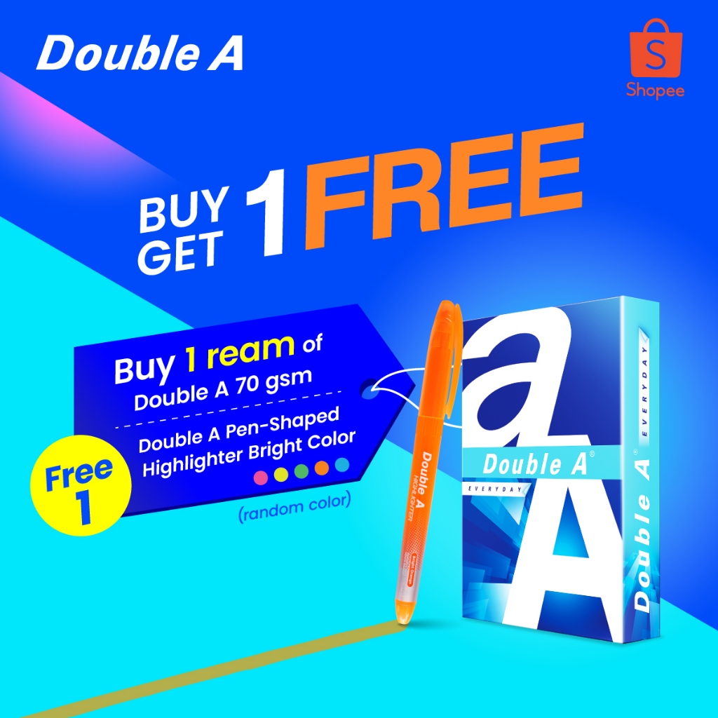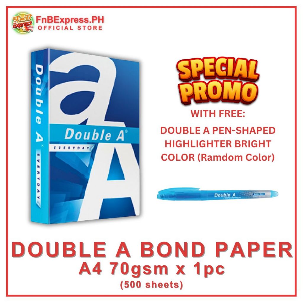 Double A Bond Paper 70GSM 500 Sheets (A4) W/ Free 1pc Double A Pen-Shaped Highlighter Bright Color