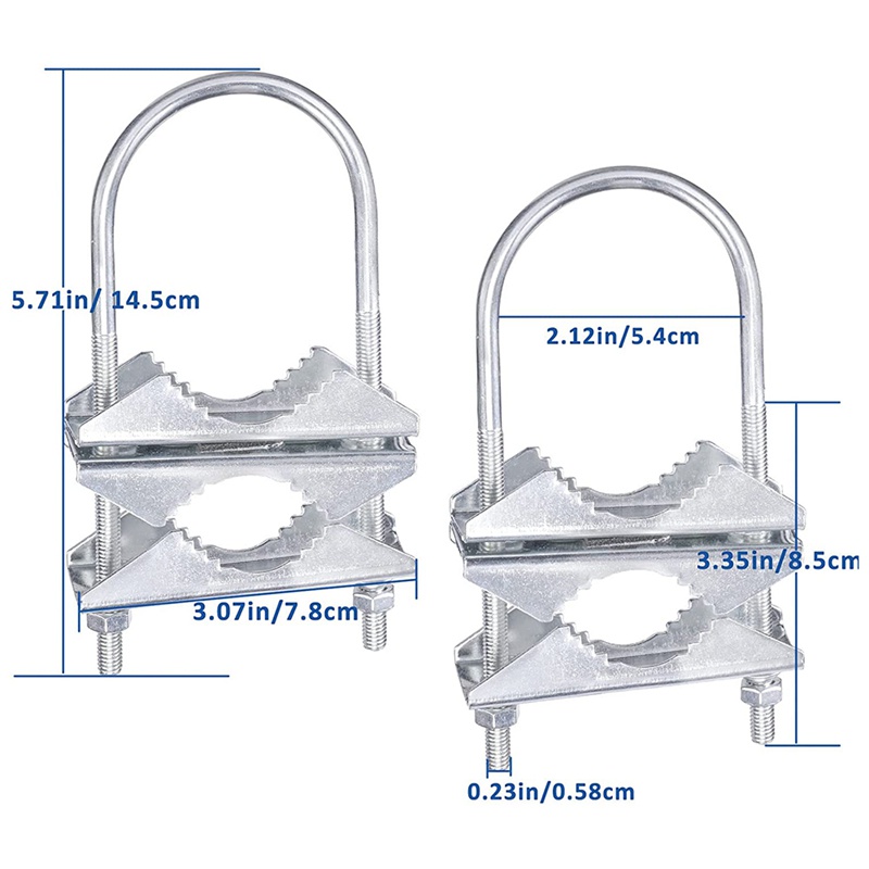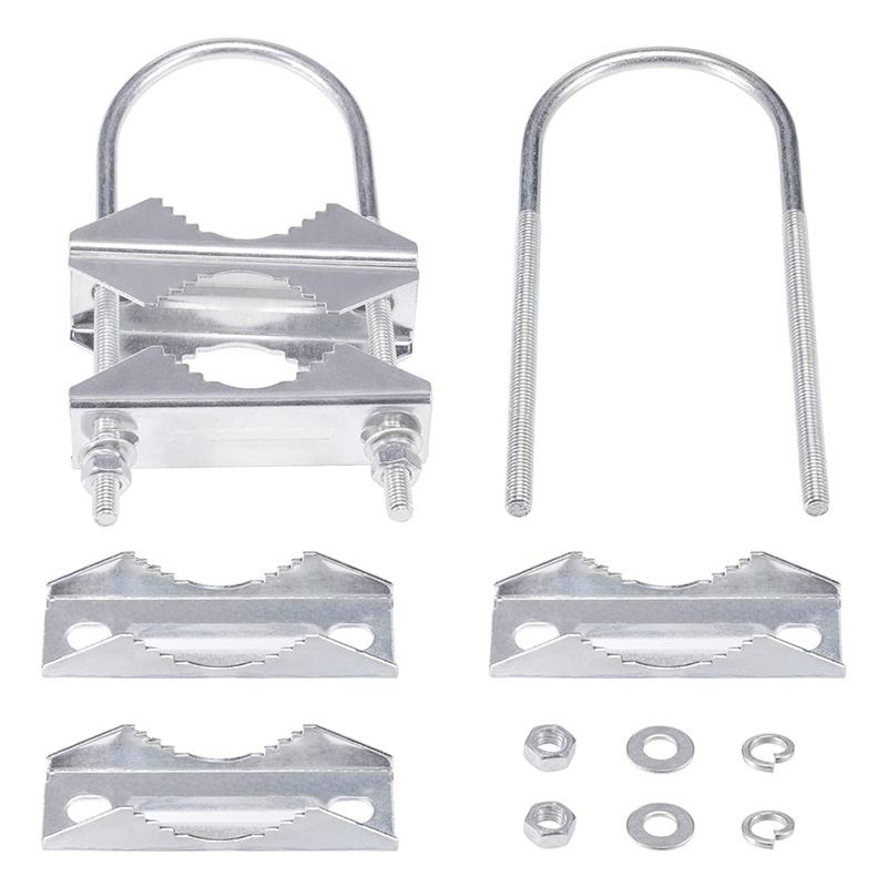 Double Antenna Mast Clamp V-Jaw Bracket U Bolts Mounting Hardware 2 Sets for Yagi WiFi Antenna, TV Antenna