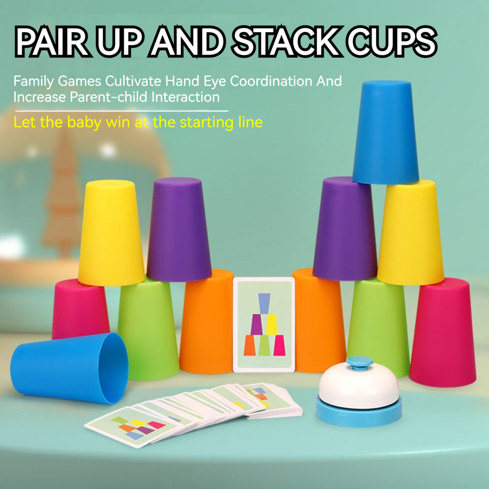 Double Battle Stacked Cup Game with Cards Montessori Toys Educational Early Education Toys for Kids