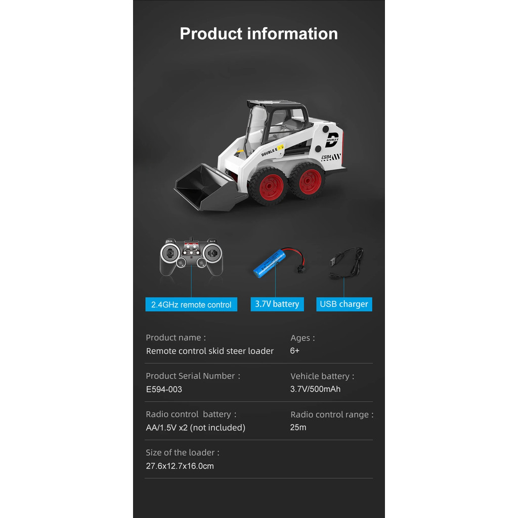 Double E E594 1/14 Remote Control Slip Loader Toy Car RC Truck Engineering Vehicle Skid Steer Cockpit Excavators Toys for Boys