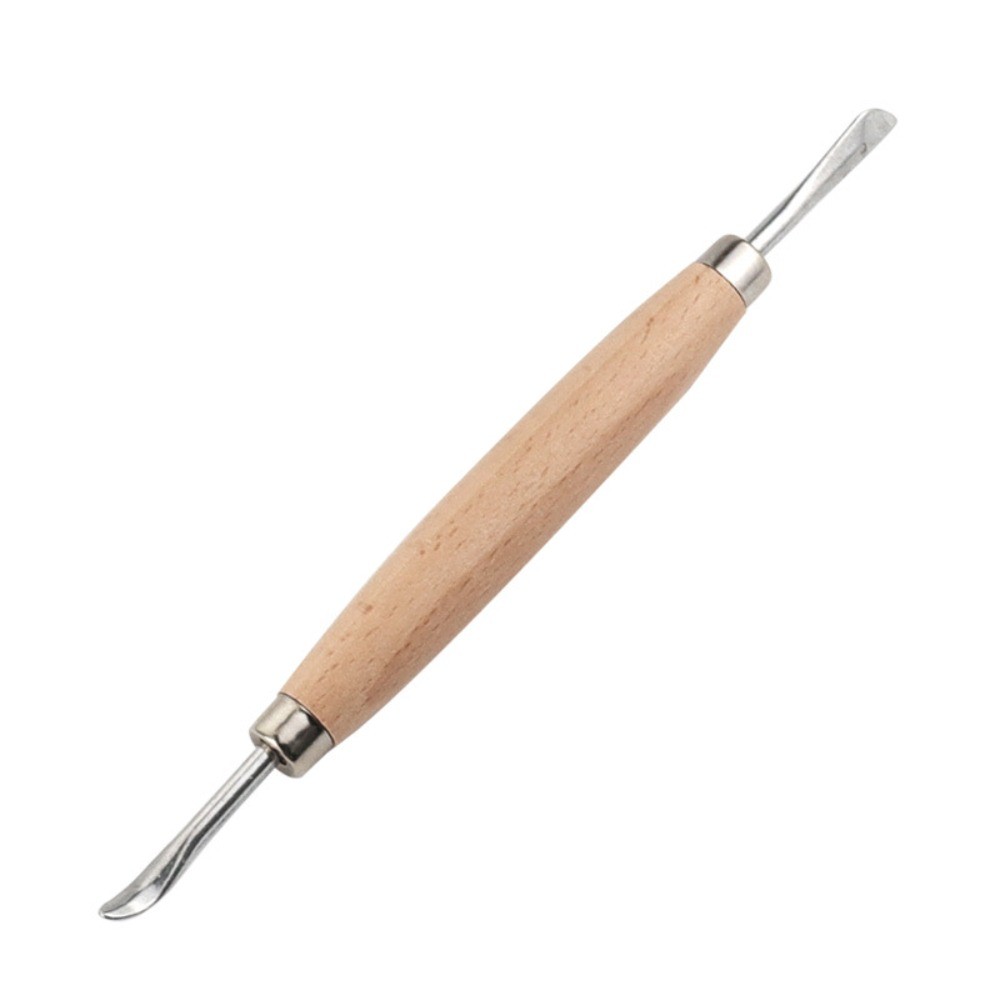 Double Ended Leather Embossing Tool DIY Rounded Spoon Leather Carving Tool Durable Stainless Steel Wooden Handle Engraving Tool