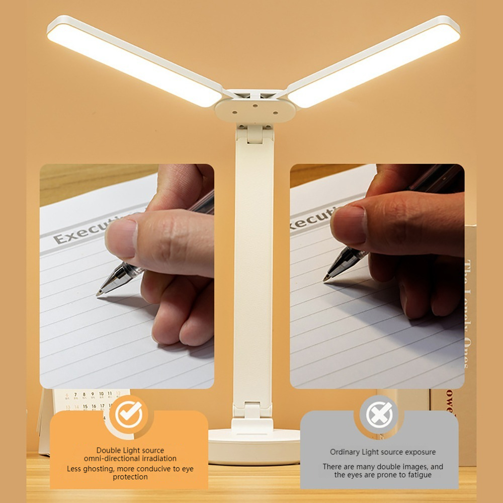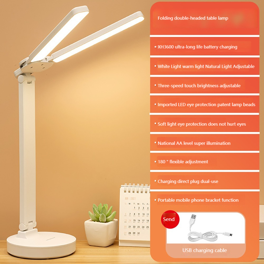 Double Head Lighting LED Rechargeable Desk Lamp Table Lamp Light Eye Study Reading Lamp Brightness
