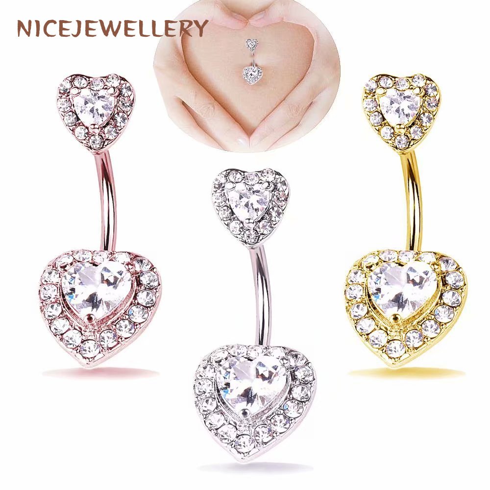 Double Heart Navel Piercings Cubic Zircon Bellybutton Piercings Gold Color Navel Rings Body Jewelry