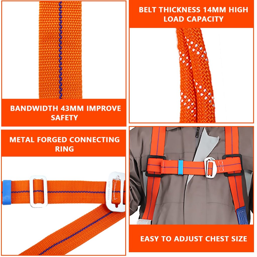 Double Large Hook Full-Body Safety Harness Adjustable Fall Protection Belt for Construction
