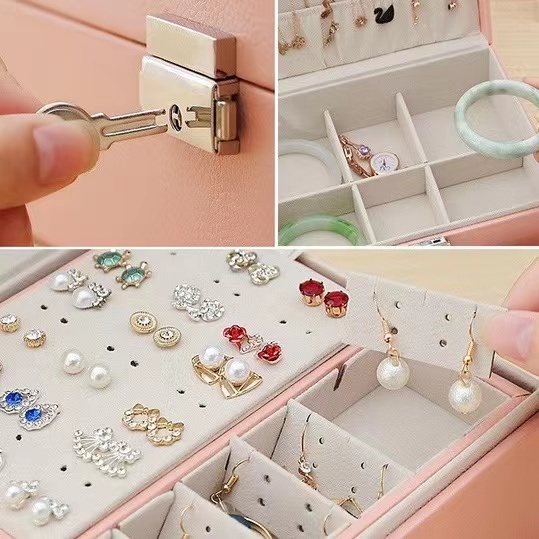 Double Layer Leather Earring Jewelry Box Stud Earring Ring Storage Box