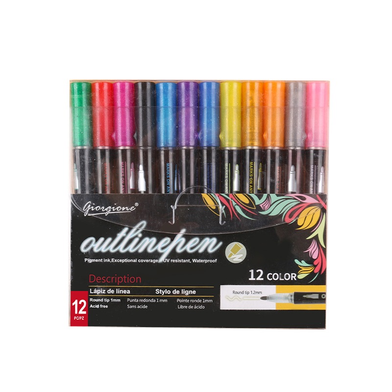 8/12/24/36Colors Double Line Outline Pens Self-outline Shimmer Markers Set for DIY Christmas Gift