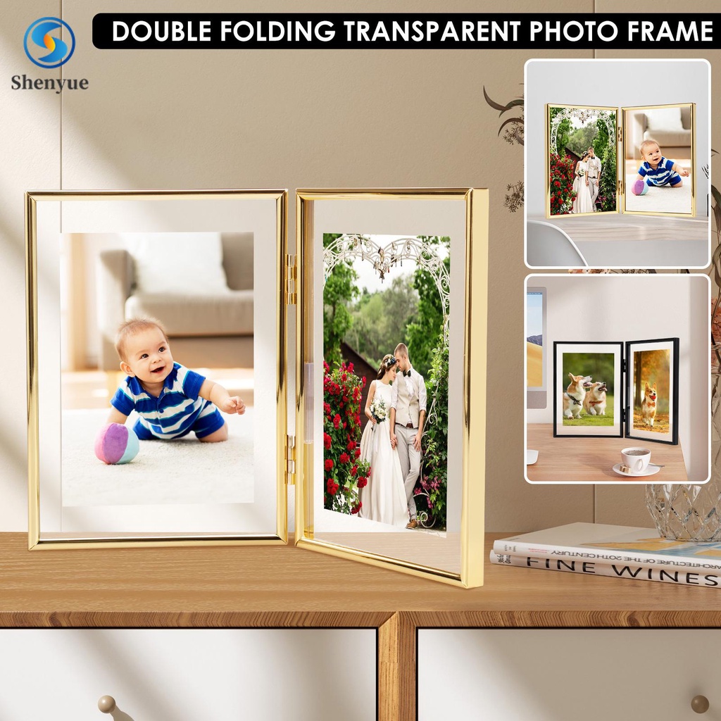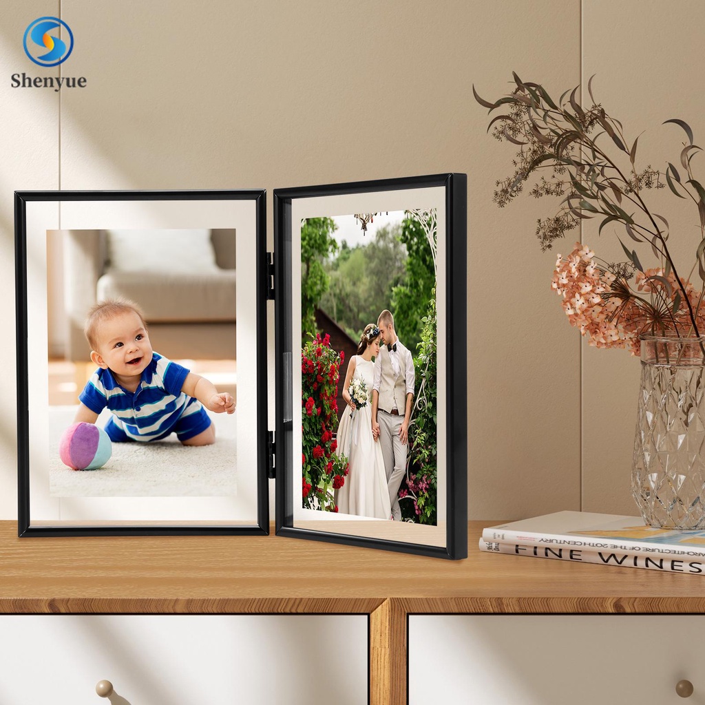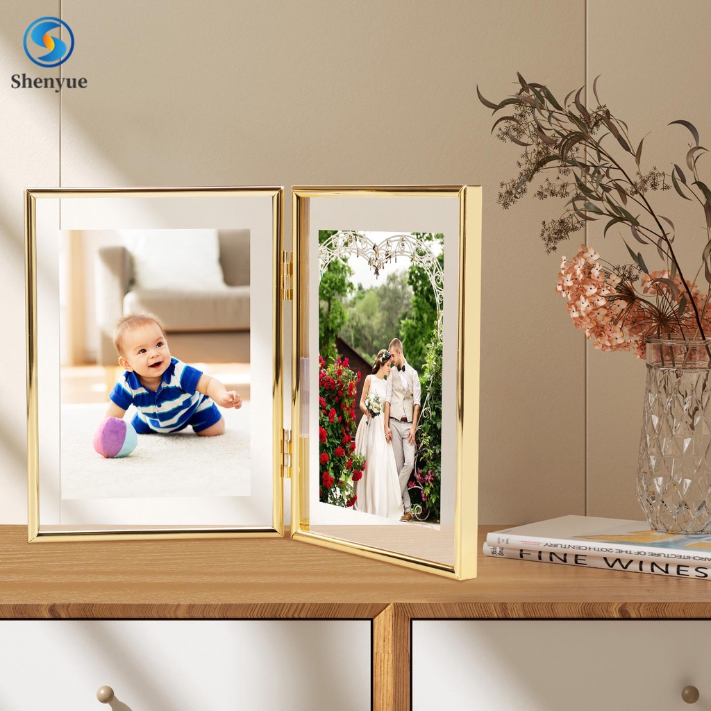Double Picture Frame 7 x 5Inch Metal Hinged 2 Photos Frame Desk Picture Frame with Glass Folding Photo Frames Vertical with Real Glass Front Tabletop Vertical Frame for SHOPSBC3813