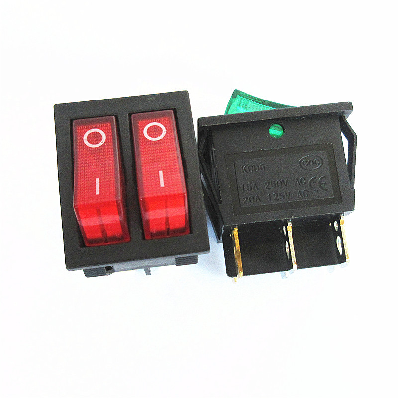 Double Rocker Switch Red Green with Light 2-speed 6-pin Power Push Button Switch Electric Cake Pan Electric Heater Switch