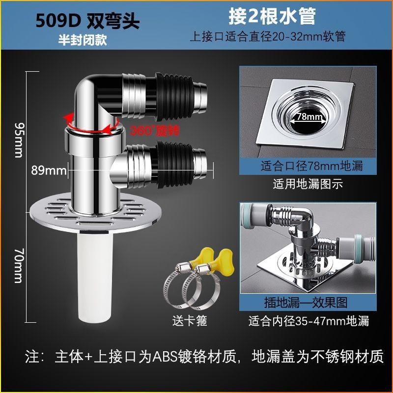 Double Washing Machine Basin Downcomer Drain Three-Way Floor Drain Connector Two-in-One Sewer Deodorant Overflow-Proof Water Pipe Connector