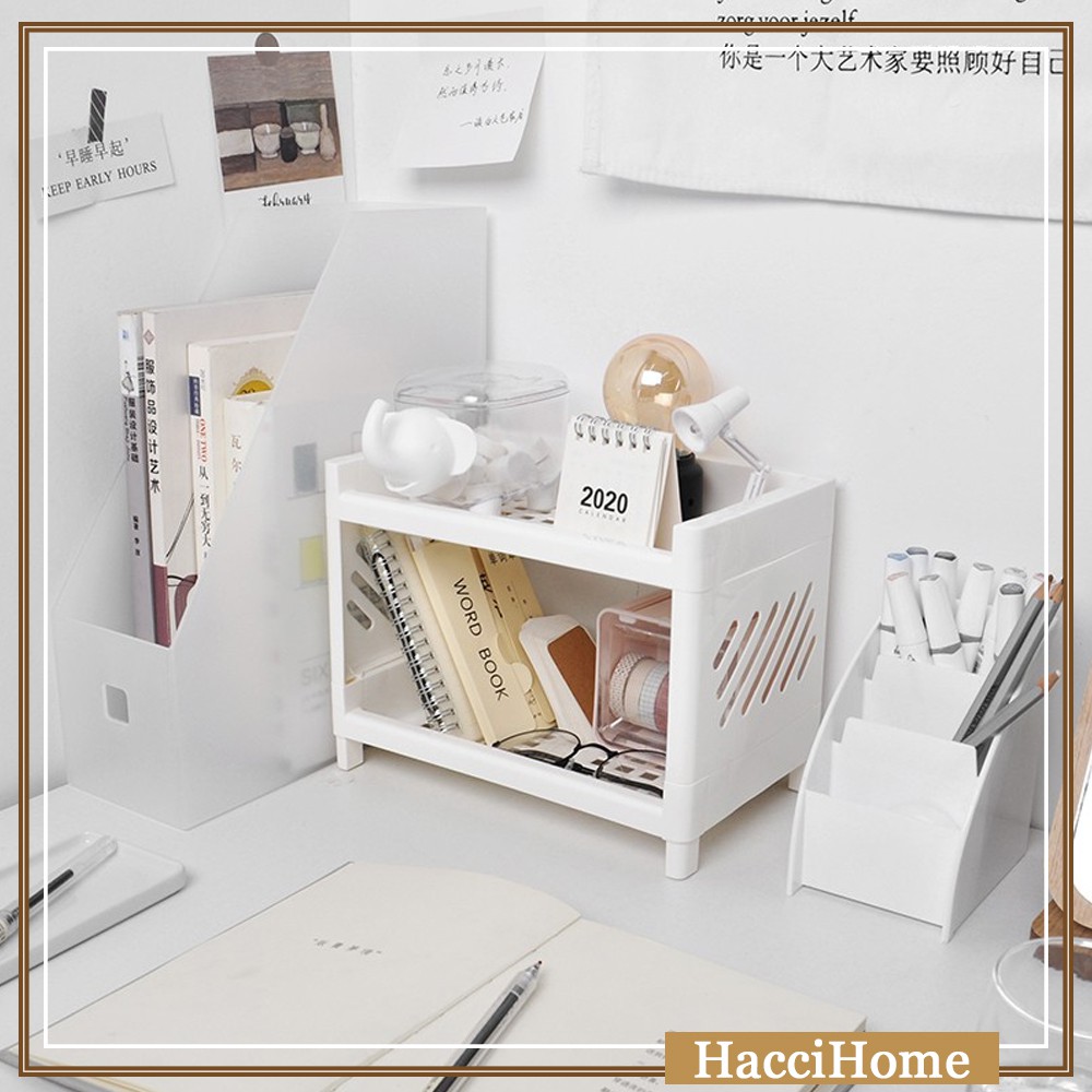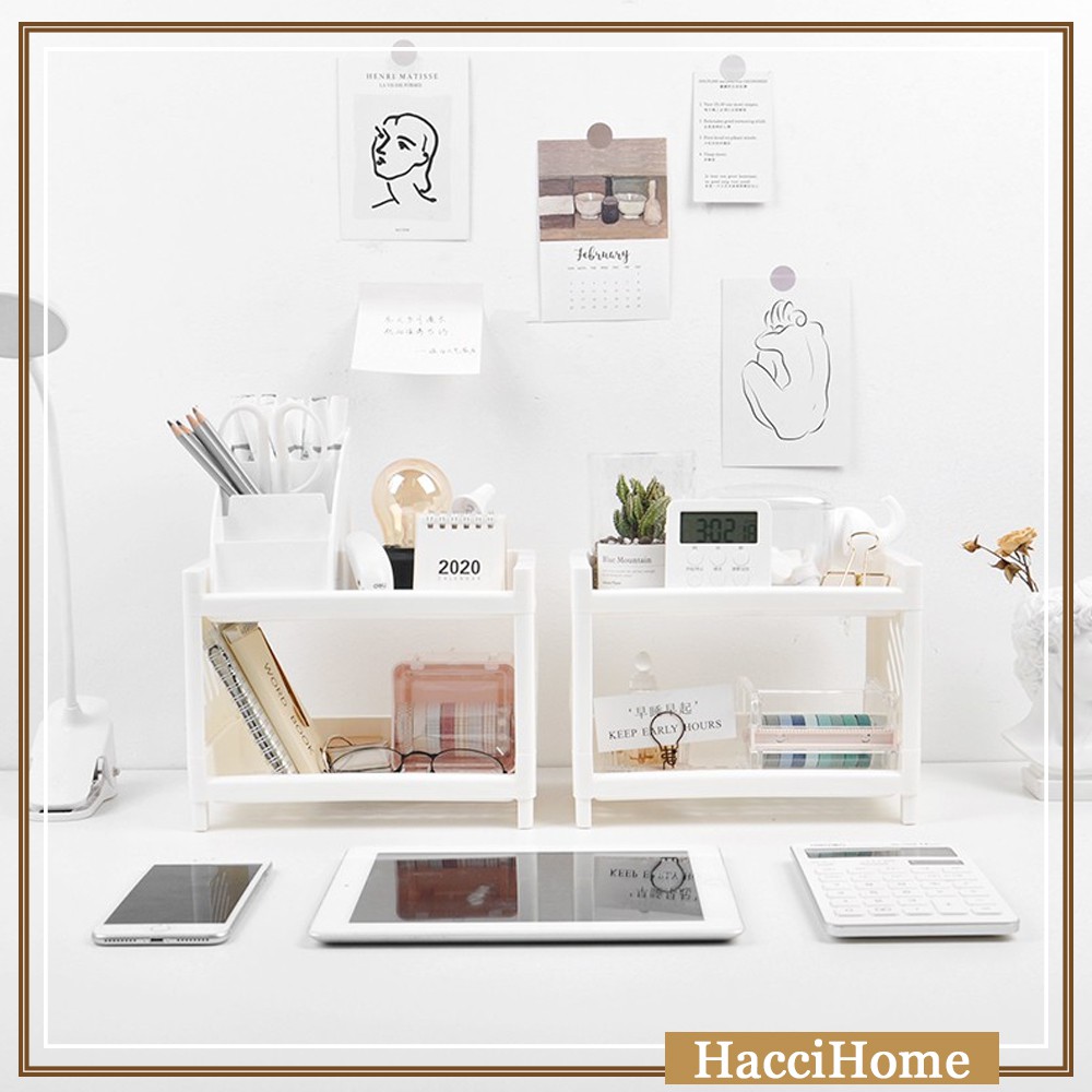 Double-layer Desktop Plastic Organizer Stationery Storage Rack