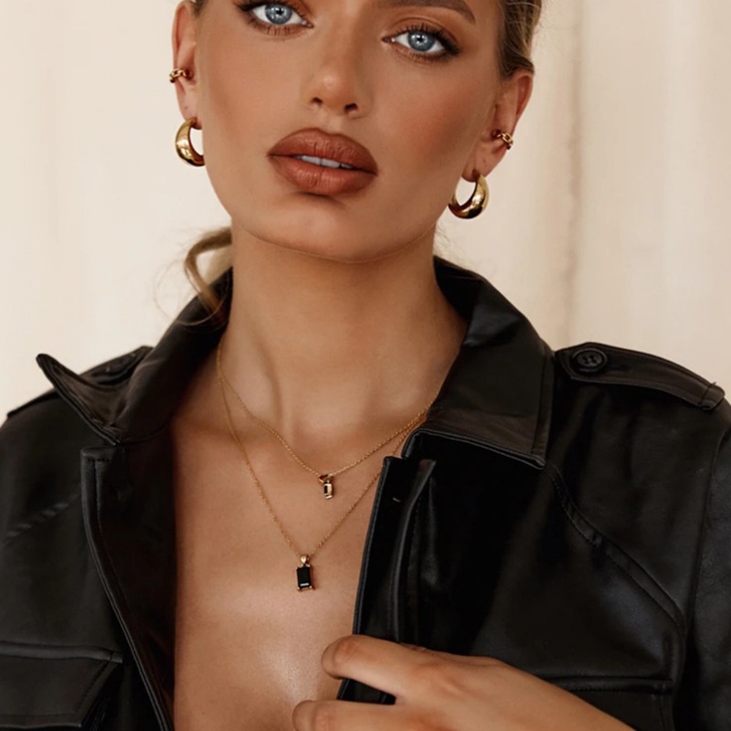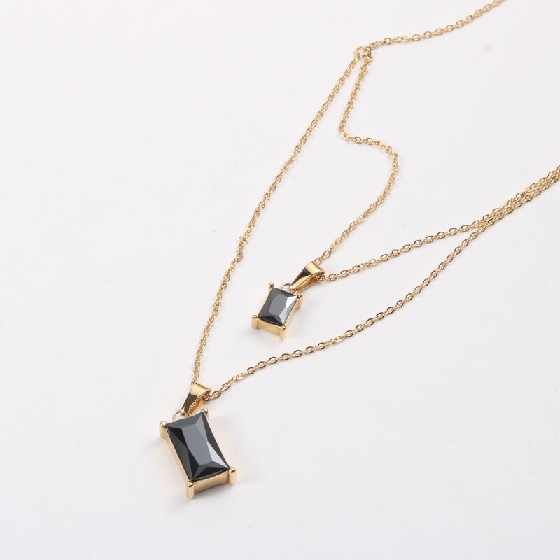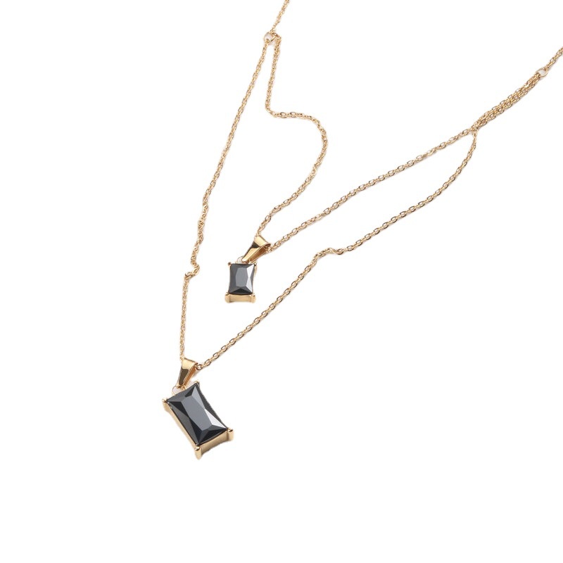 Double-layer square black diamond necklace ladies trendy hip-hop simple wild clavicle chain female trendy matching clothes titanium steel street