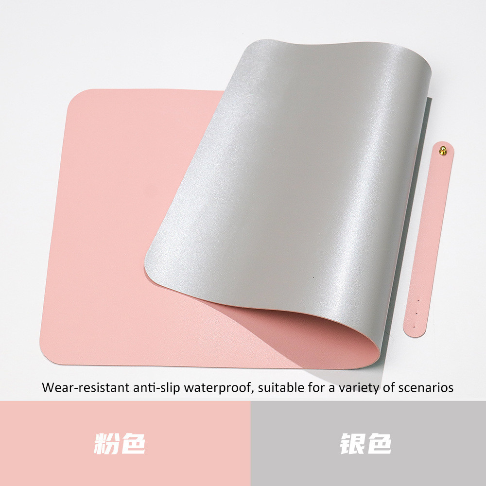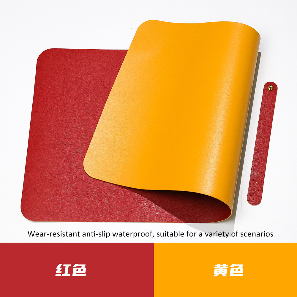 Double-sided Solid Color Simple Stitching Leather PU Desk Mat Desk Study Desk Writing Mat Oversized Mouse Mat Anti-Slip Waterproof Deskt