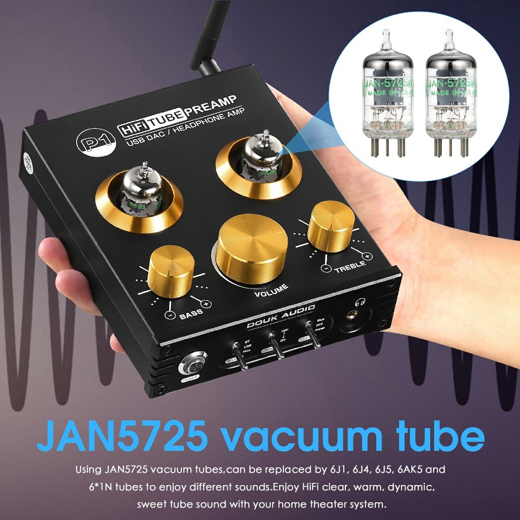 Douk Audio P1 HiFi JAN5725 Vacuum Tube Preamp Bluetooth 5.0 Audio Receiver USB DAC Headphone Amp APTX