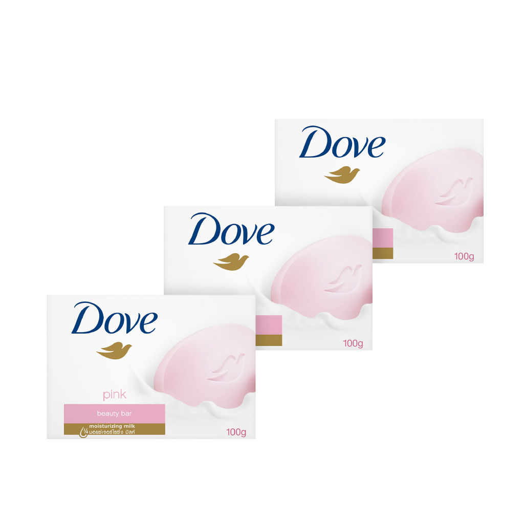 Dove Beauty Bar Pink Body Cleanser for Nourished Skin with 1/4 Moisturizing Cream Triples 100g x3