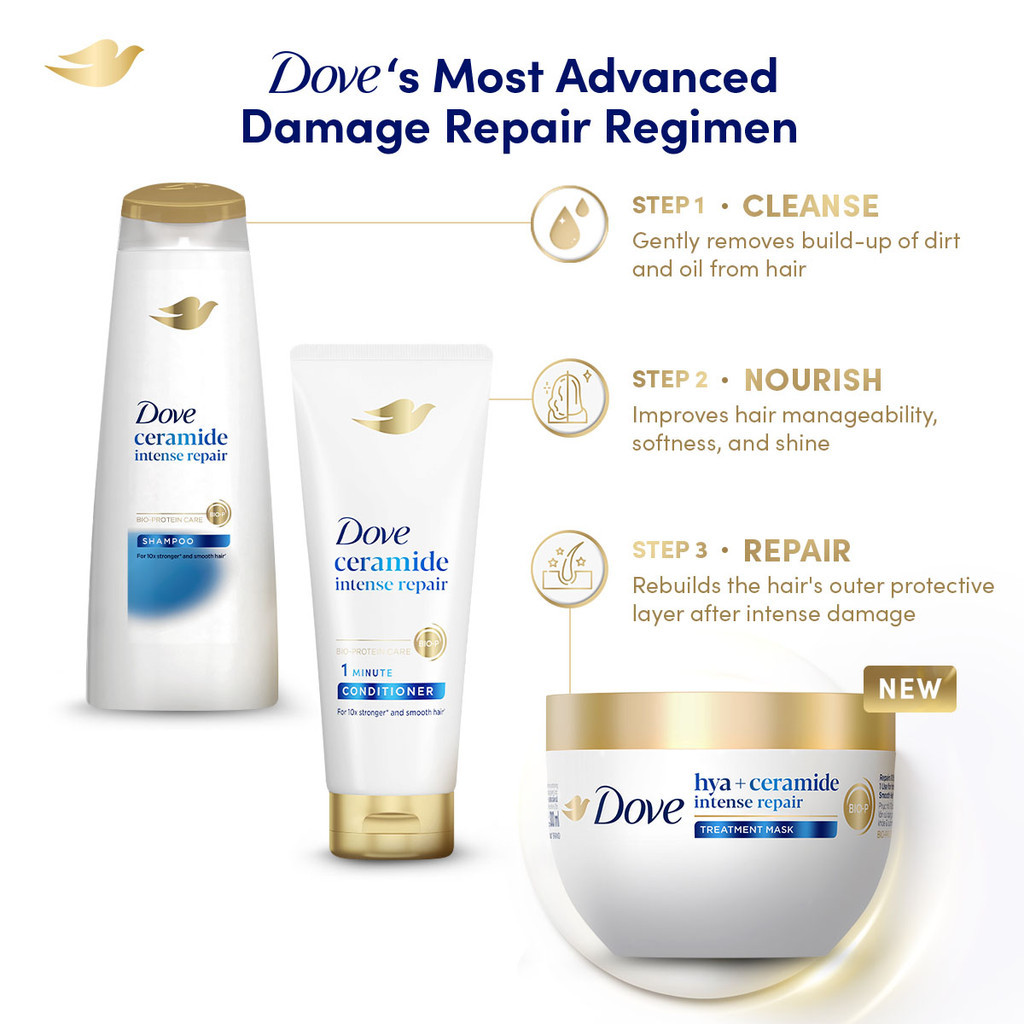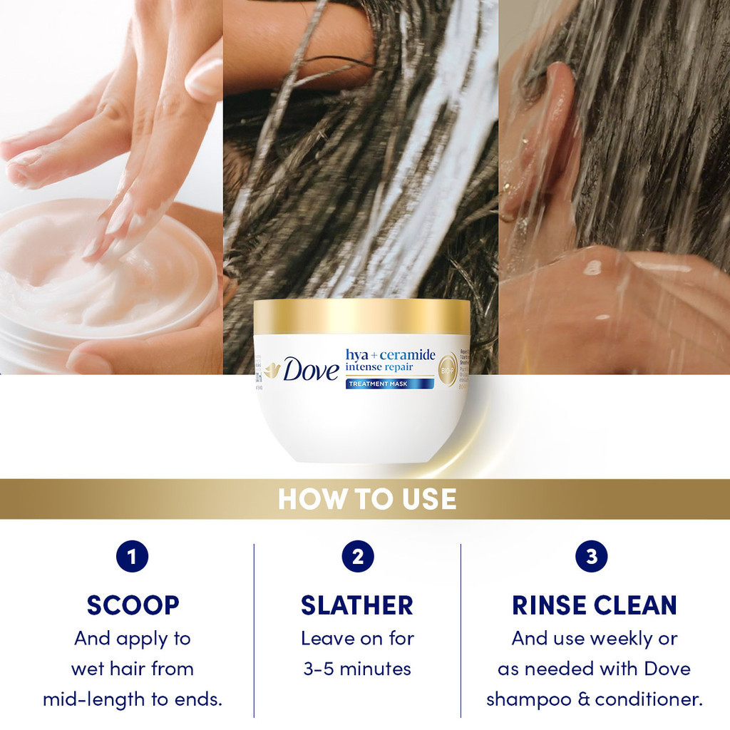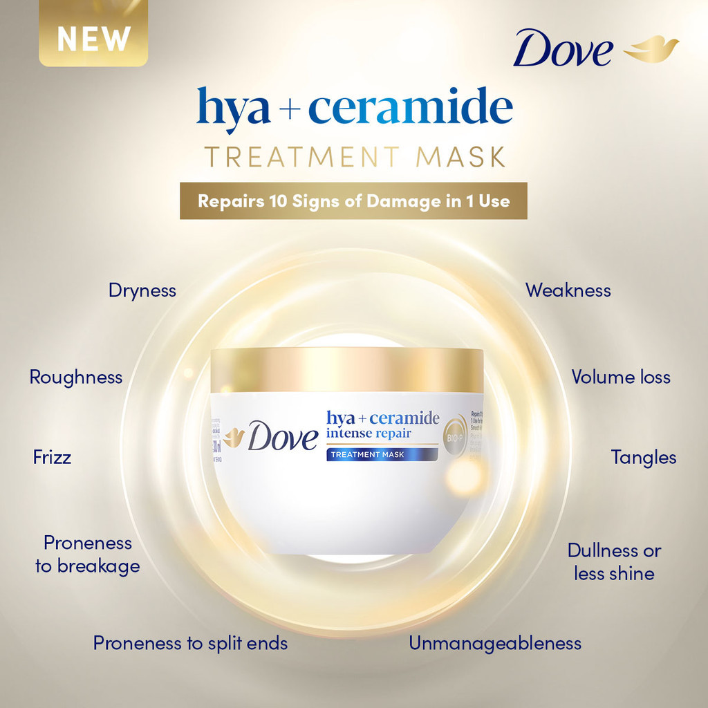 Dove Hya+Ceramide Intense Repair Treatment Mask 300ml for Damaged, Bleached Hair