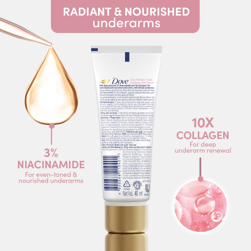 Dove Radiant + Care Deodorant Dry Serum 3% Niacinamide 10x Collagen Deep Renew 40ml