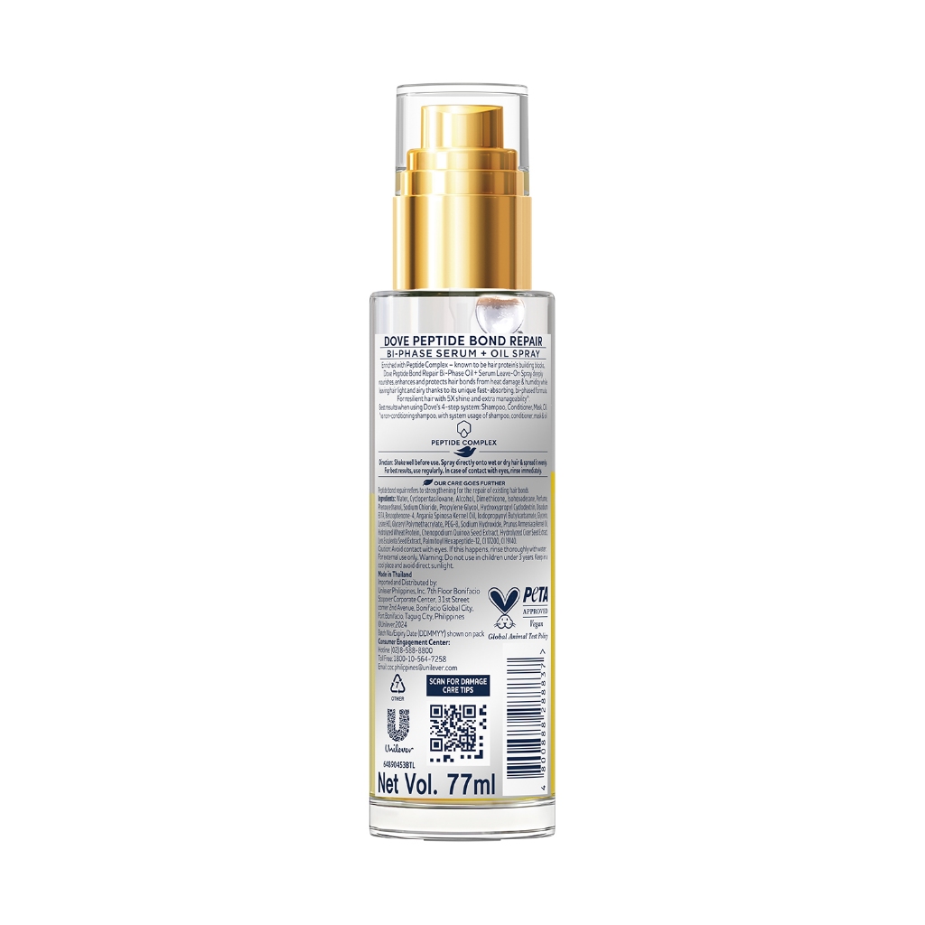 Dove Peptide Bond Repair Bi-Phased Serum and Oil Spray 77mL for Repairing Extremely Damaged Hair
