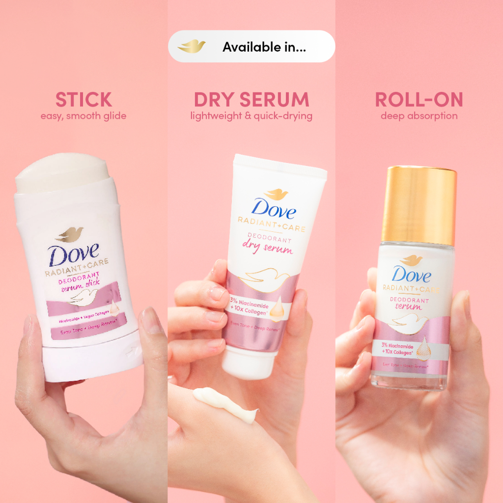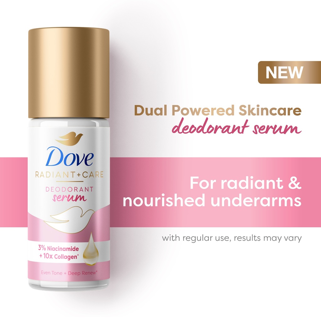 Dove Radiant + Care Deodorant Serum Roll On 3% Niacinamide 10x Collagen Deep Renew 45ml