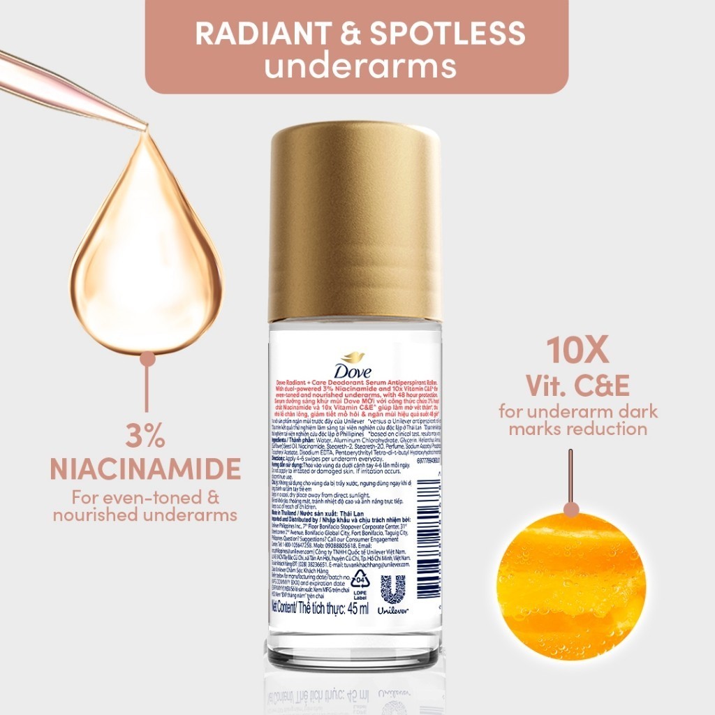 [Bundle of 2] Dove Radiant + Care Deodorant Serum Roll On 3% Niacinamide 10x Vitamin C&E 45ml