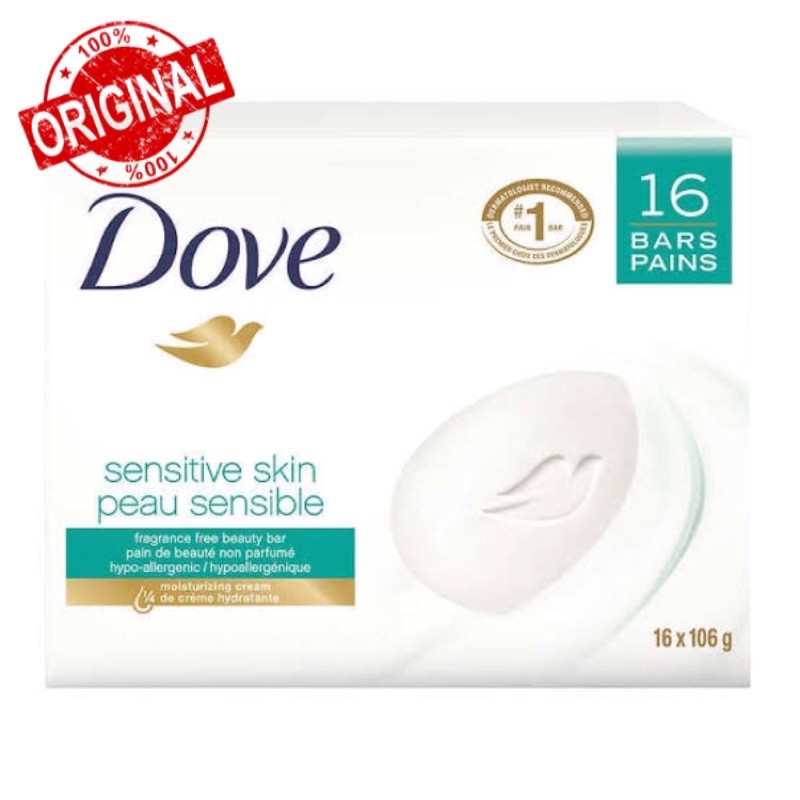 Dove Sensitive Skin Unscented Beauty Bar Soap - 3.75oz/106g (Pack of 16)