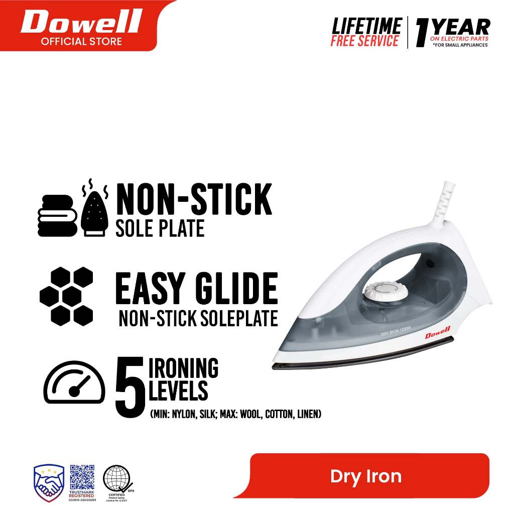 Dowell Lightweight Non-stick Flat Dry Iron | DI-743NS