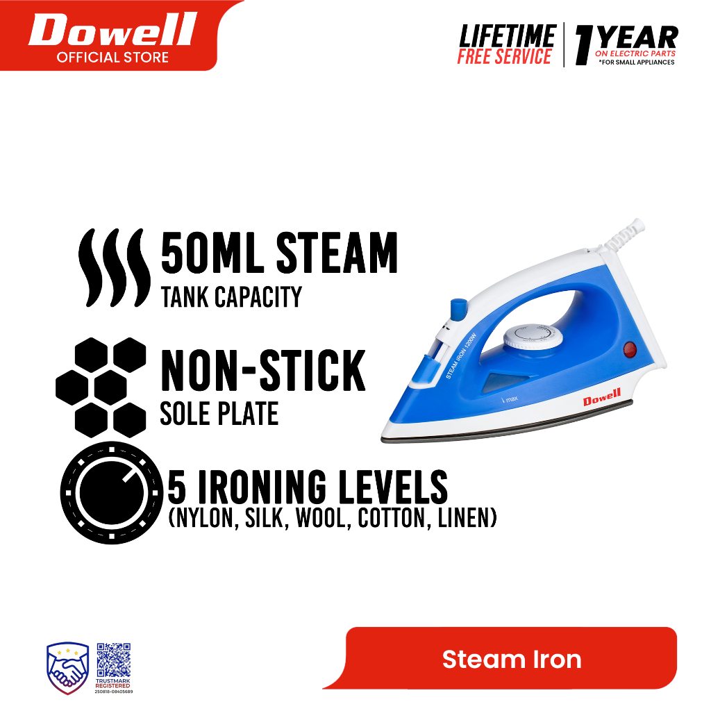 Dowell Steam Iron Non-Stick Soleplate | SI-788