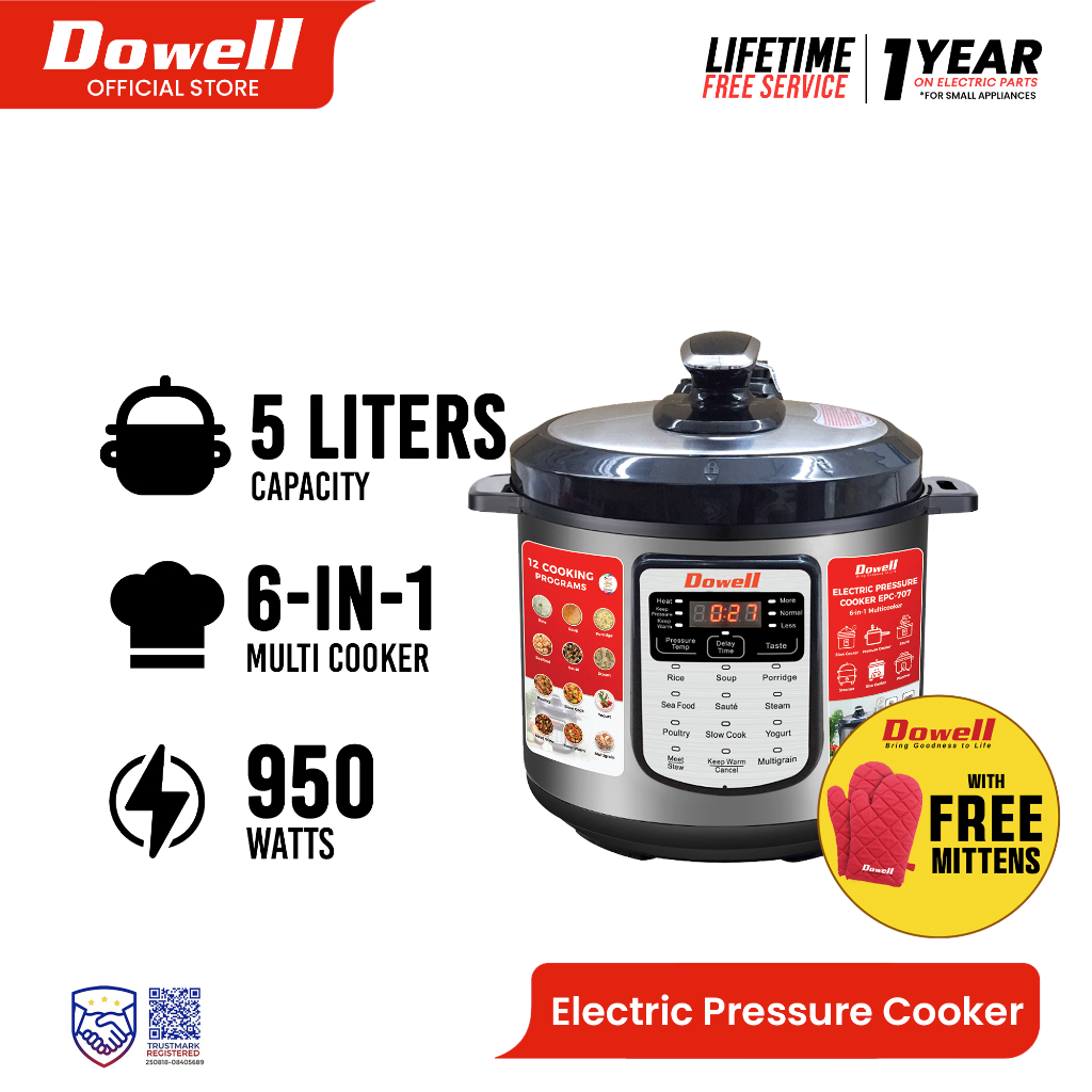 Dowell 5L 6-in-1 Multi Cooker Electric Pressure Cooker with FREE Oven Mitts | EPC-721