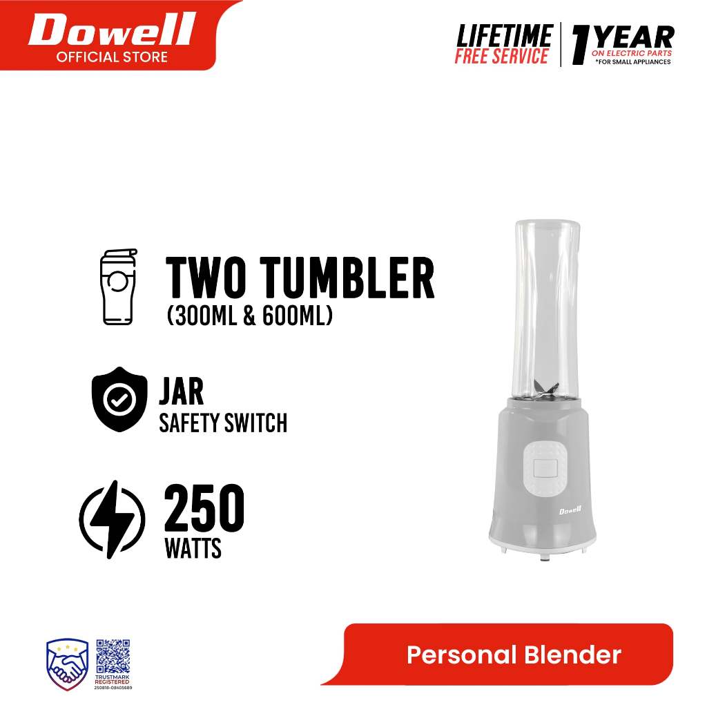 Dowell 300 ml & 600 ml Personal Two Tumbler Blender | PBL-19