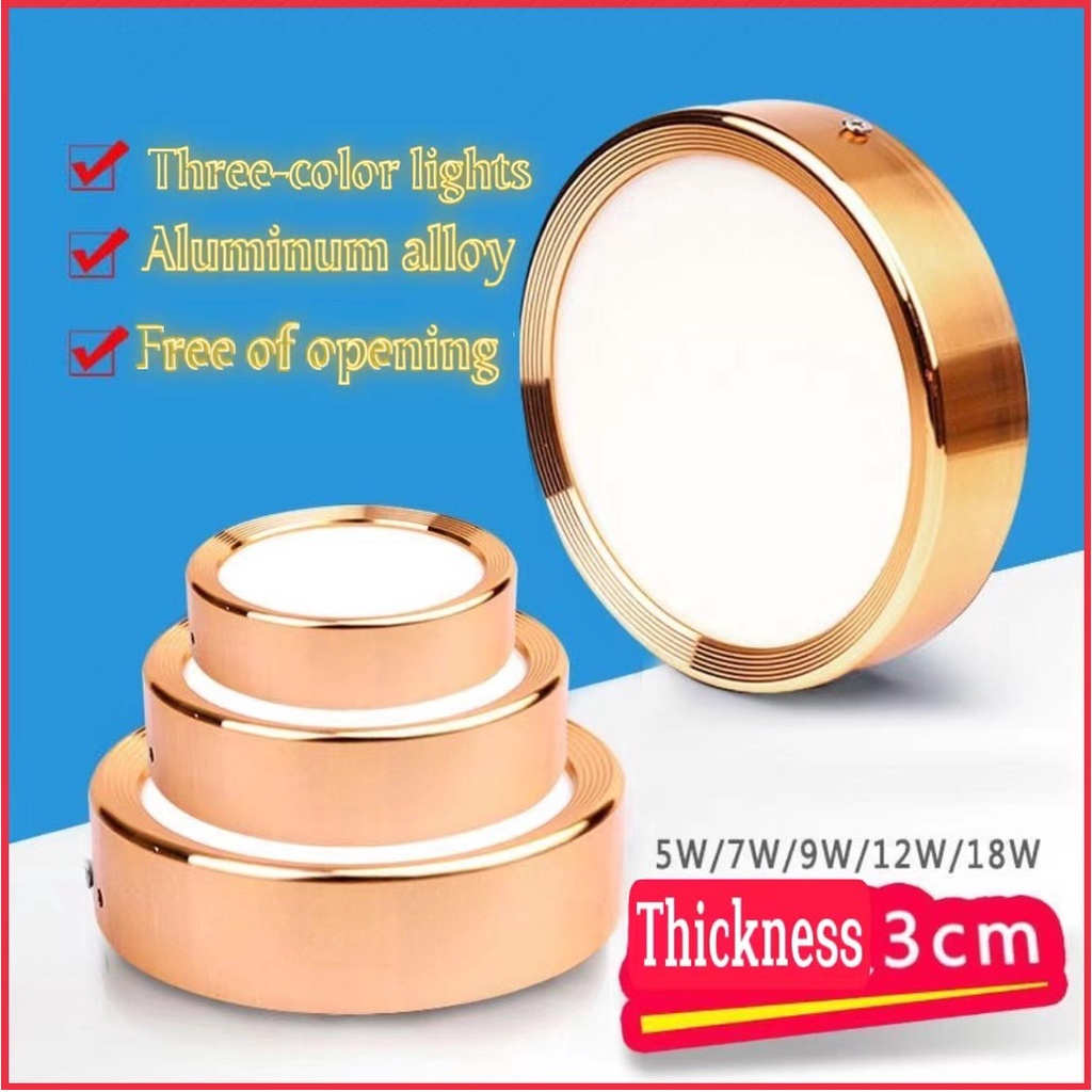 Downlight Aluminum Gold Panel Light LED Circular Living Room Aisle Three Color Lights Ceiling lamp