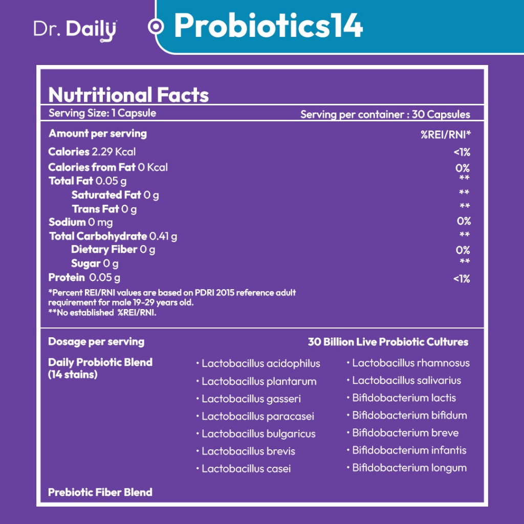 Dr Daily Probiotics 14 - 30 Billion CFU Food Supplement | Gut Health, Immunity, Bloating Relief, and