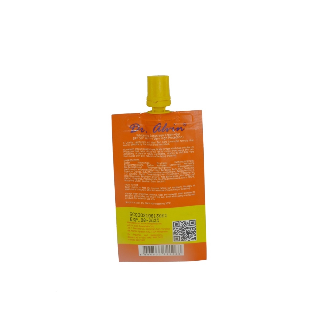 Dr. Alvin Whitening Sunscreen Cream Gel Spf50++++ 10ml